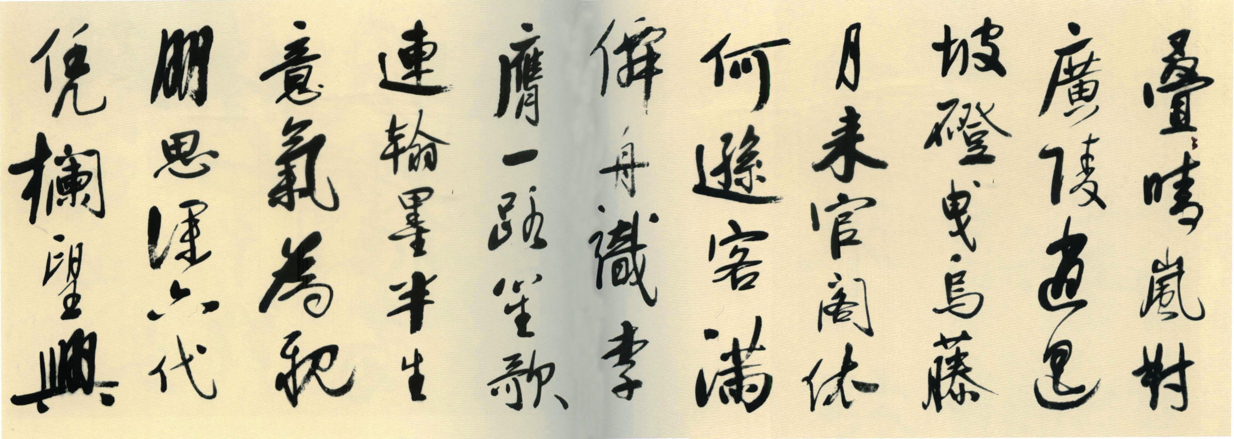 释文:叠叠晴岚对广陵,逍遥坡磴曳乌藤。月来官阁依何逊,客满仙舟识李膺。一路笙歌连翰墨,半生意气为亲朋。思深六代凭栏望,兴