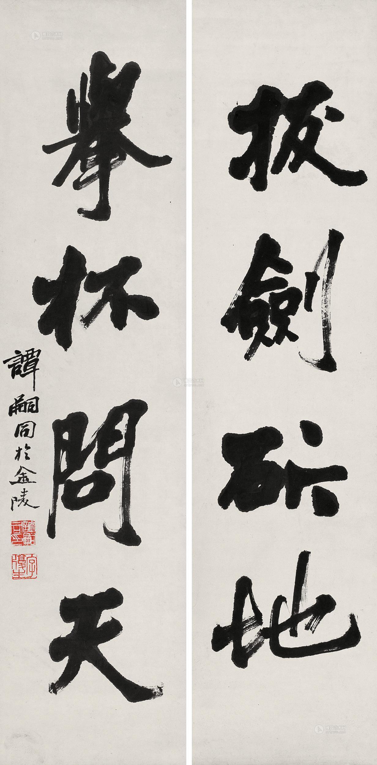 谭嗣同《“拔剑举杯”四言联》 纸本水墨立轴 91×22cm×2来自上海泓盛拍卖
