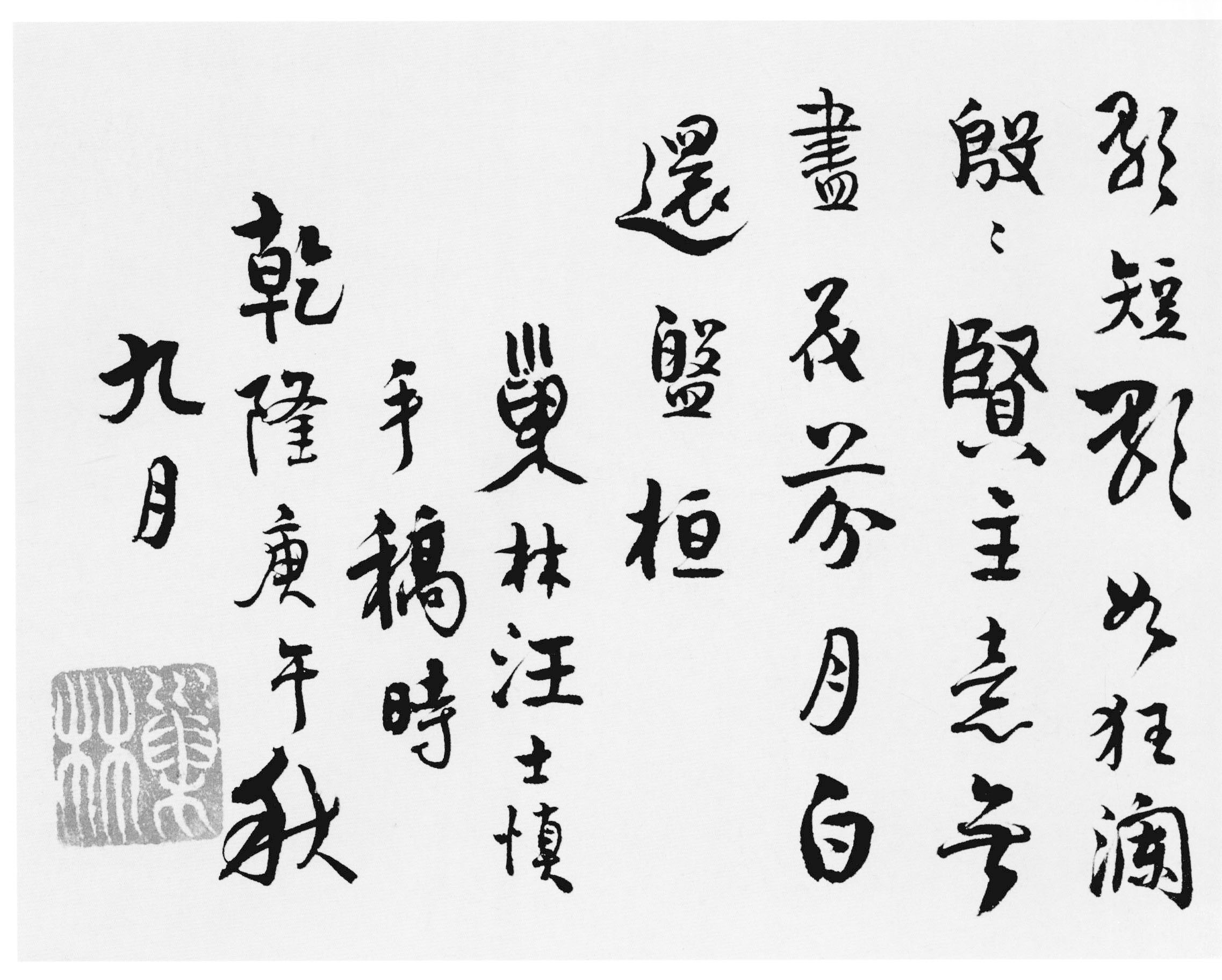 款署:巢林汪士慎诗稿。时乾隆庚午秋九月。
