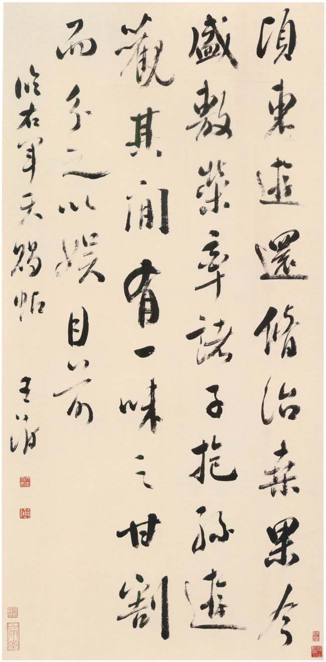 此书临右军书,但用笔用墨均不是右军法。细观此幅,用枯渴之笔写清腴之宁,表现了古雅的趣味。