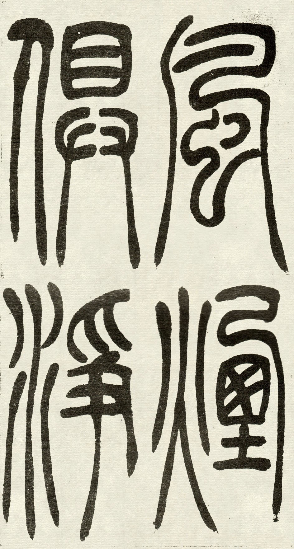 吴熙载《篆书吴均“与朱元思书”四条屏》(上图来自《书法》杂志1980年第三期)