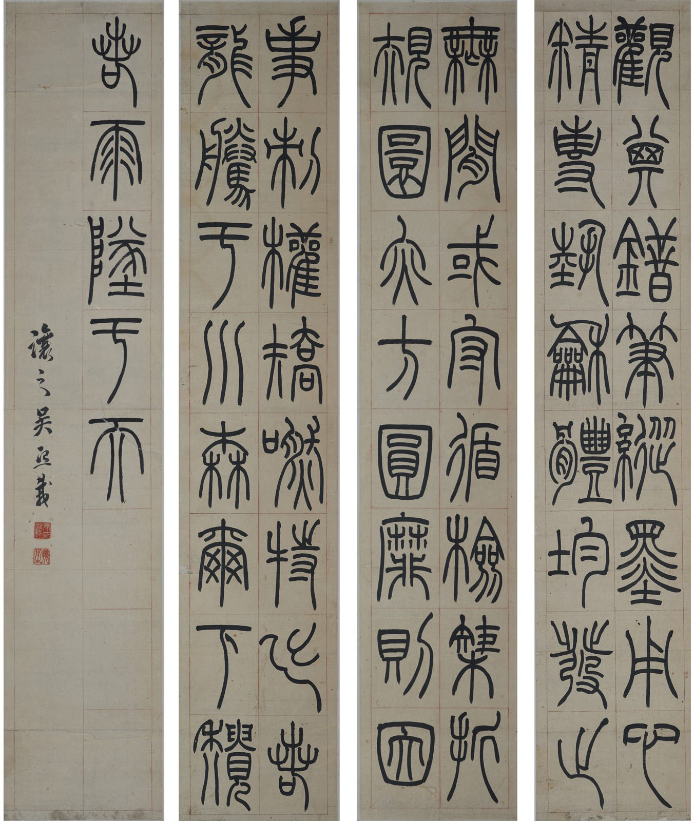 吴熙载《节录卫恒四体书势四条屏》纸本篆书 122.8×23.7cm×4 南京博物院藏