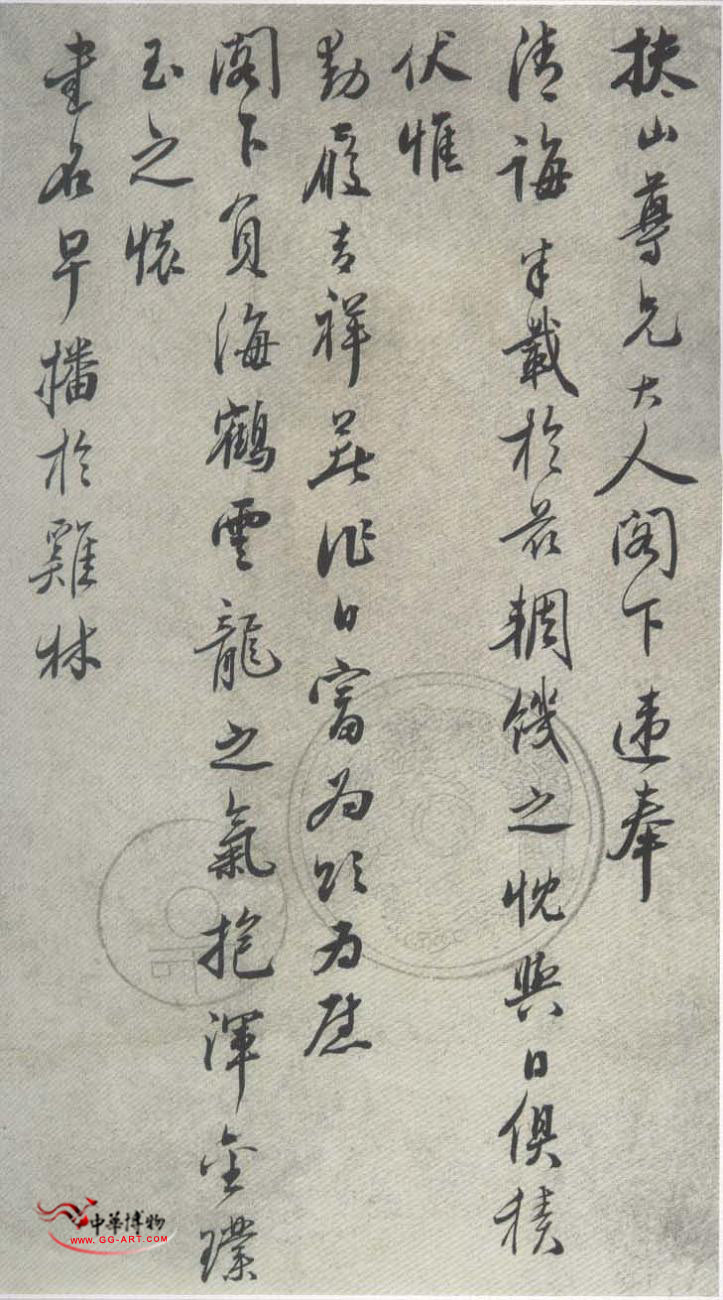 扶山尊兄大人阁下:违奉清诲,半载於兹,輖饥之忱,与日俱积。伏惟动履吉祥,著作日富,为颂为慰。阁下负海鹤云龙之气,抱浑金璞玉之怀,书名早播於鸡林,文誉定驰於鸾掖,其为倾慕,何可胜言。至於以泉石为襟情,视友月若性命,此种风谊,尤今所难,非阿好之言也。弟却扫读书,闭门……