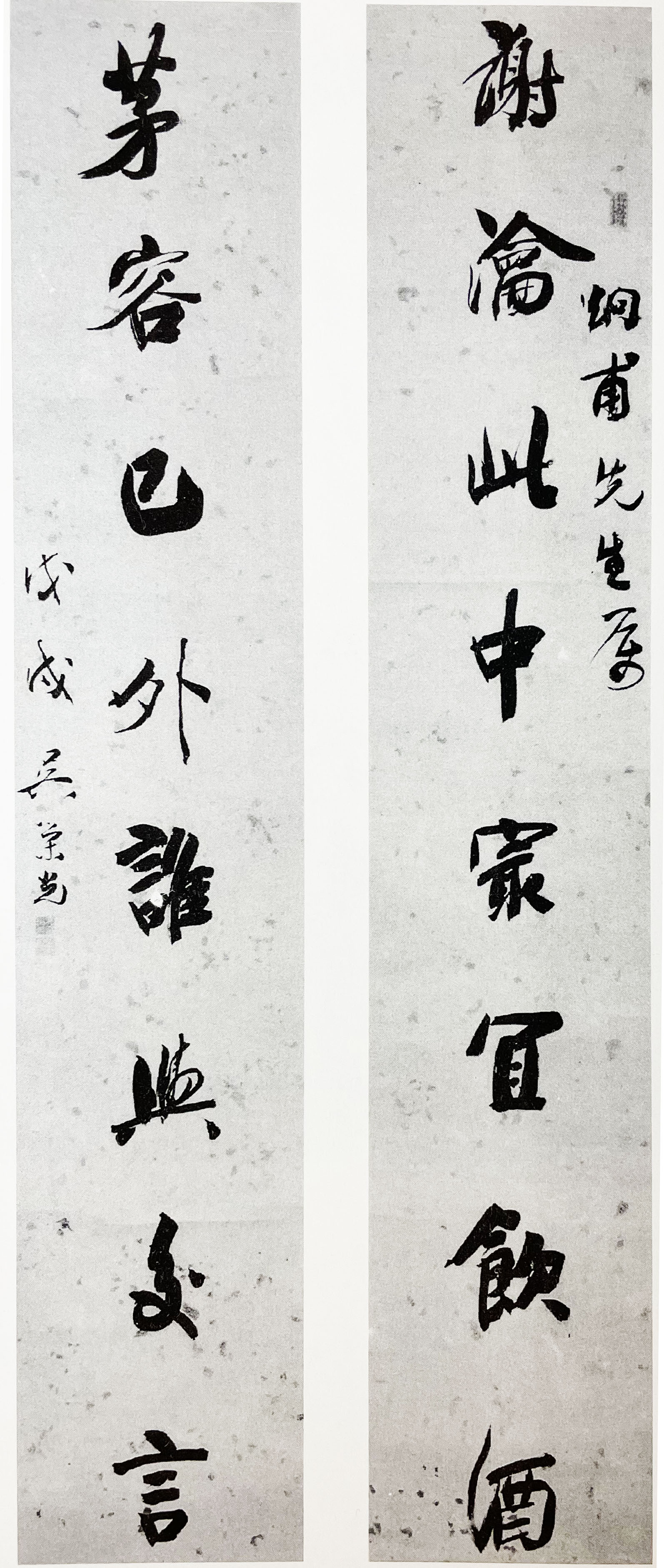 吴荣光《赠炯甫八言联》洒金笺纸本 行草书 196×33cm×2 1823年 小莽苍苍斋旧藏
