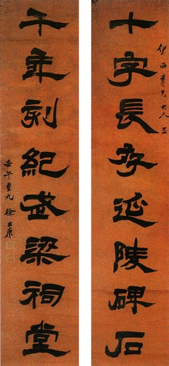 隶书八言联 洒金腊笺,立轴 162×35.5厘米