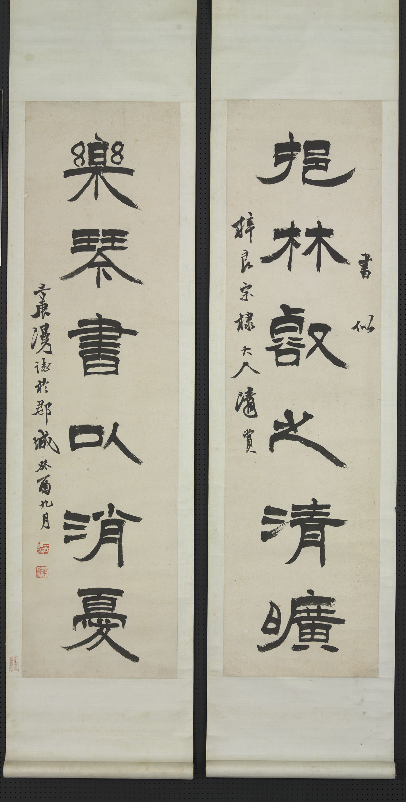 徐三庚《隶书挹林乐琴六言联》纸本 115.1× 31.2cm × 2 1873年 台北故宫博物院藏