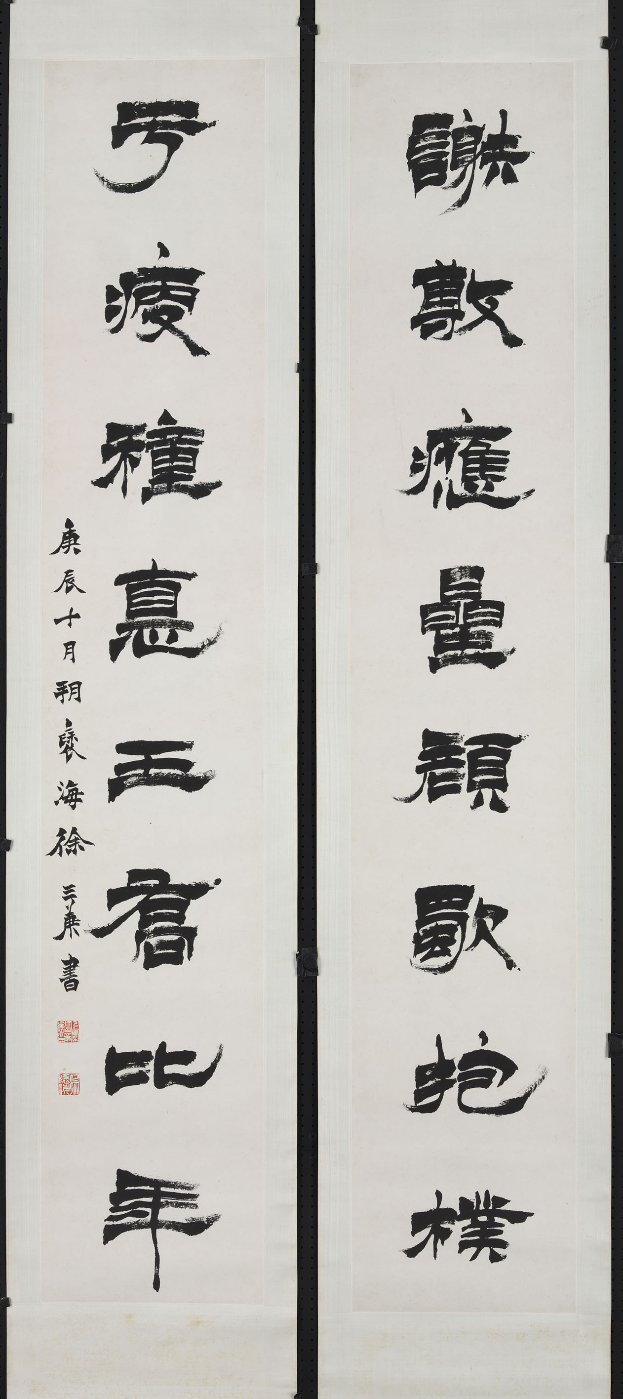 徐三庚《隶书谢敷于瘦八言联》纸本 130.8×21.8cm × 2 1880年 台北故宫博物院藏