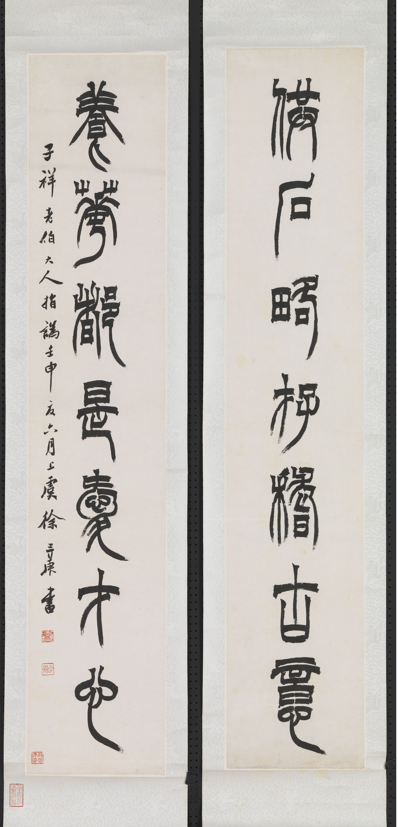 徐三庚《篆书供石养花七言联》纸本 100.5×19.5cm × 2 1872年 台北故宫博物院藏