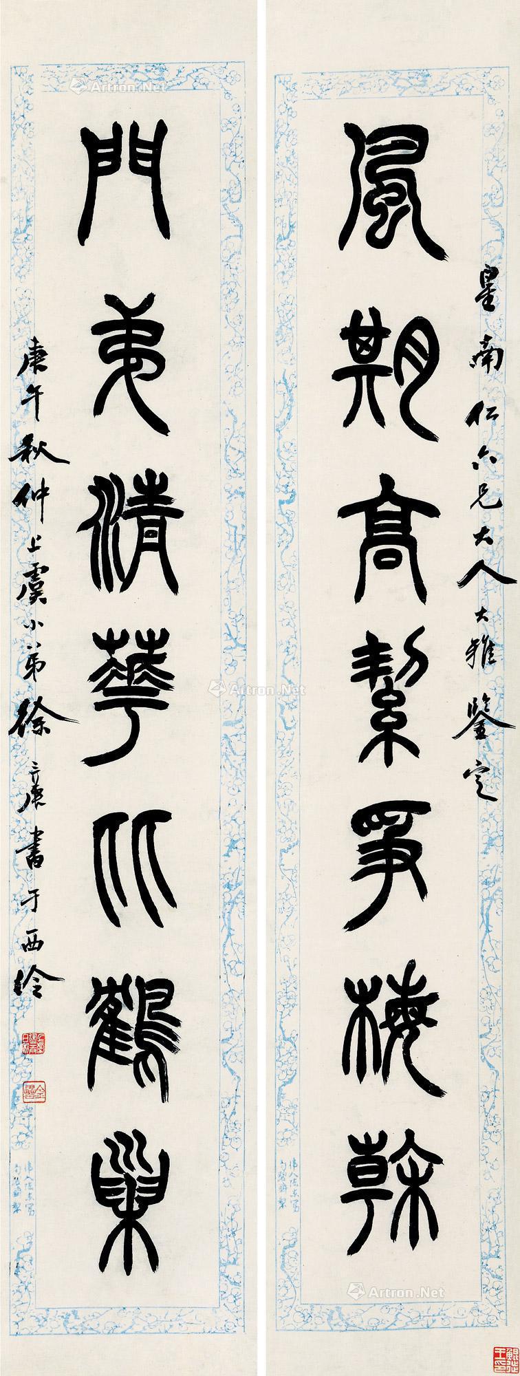 徐三庚《篆书风期门第七言联》纸本 105×19.5cm×2 1870年 来自朵云轩2020拍卖会