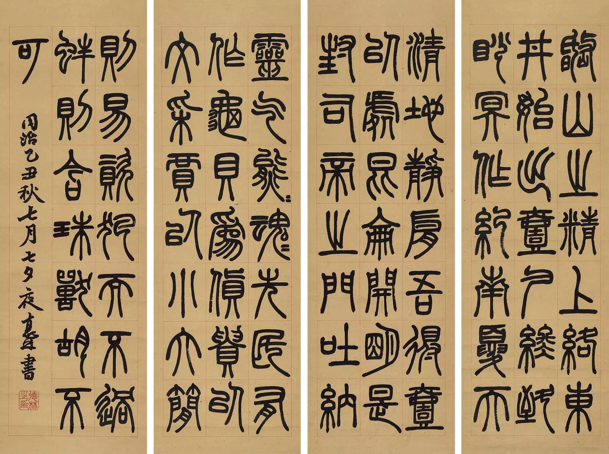 阎德林《篆书节录山海经四屏》纸本 85×28.5cm×4 1865年作 中国嘉德香港2023秋拍