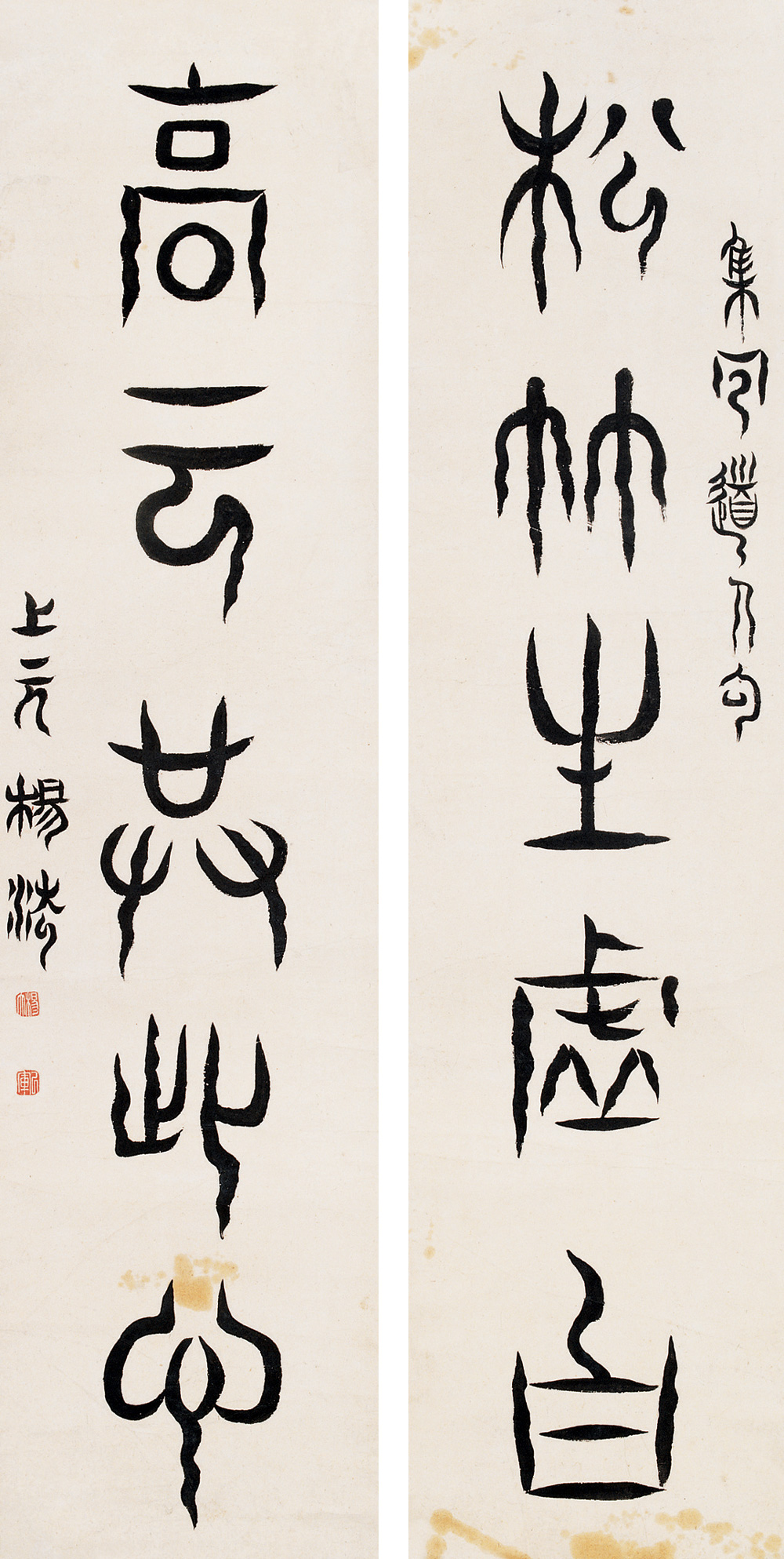 杨法《篆书五言联》 设色纸本 116×28cm×2