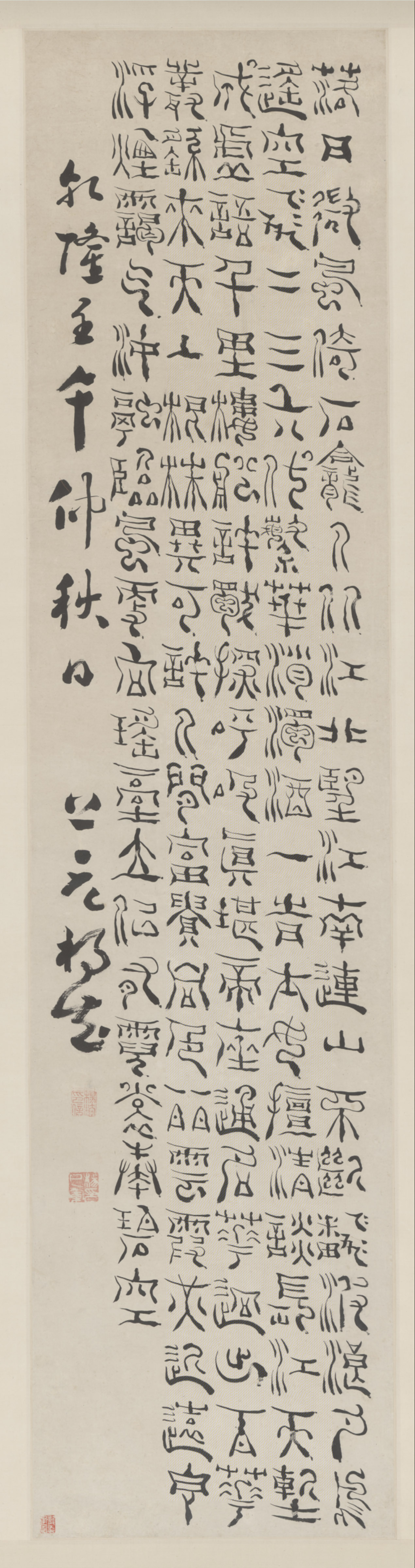 杨法《篆书七言诗》轴,纸本 120.3×28.9cm 清乾隆二十七年(1762年)作 北京故宫博物院藏
