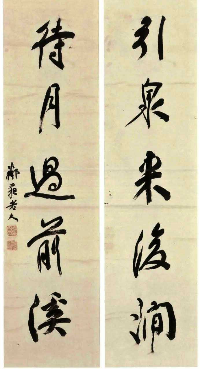 杨守敬《行书引泉待月五言联》 109.7cm×30cm×2 湖北省博物馆藏