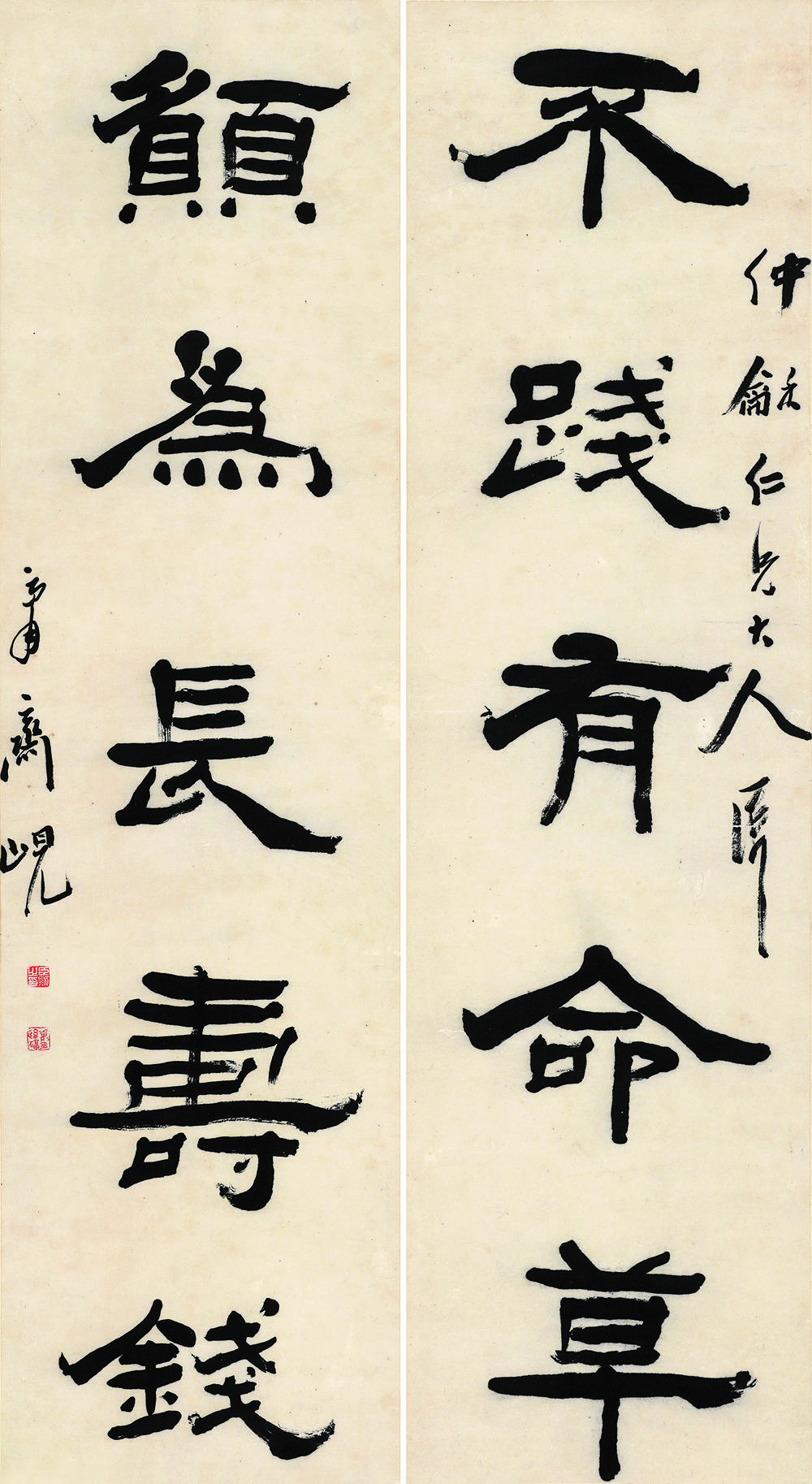 杨岘《隶书不践愿为五言联》纸本隶书 130.3×35.5cm×2 江苏省美术馆藏