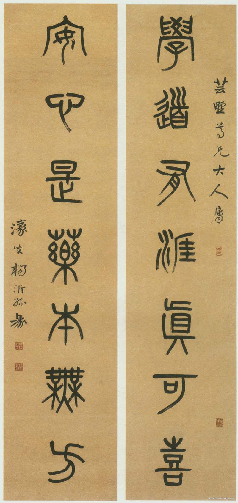 《篆书七言联》 纸本 131.3X32cmX2 西泠印社藏