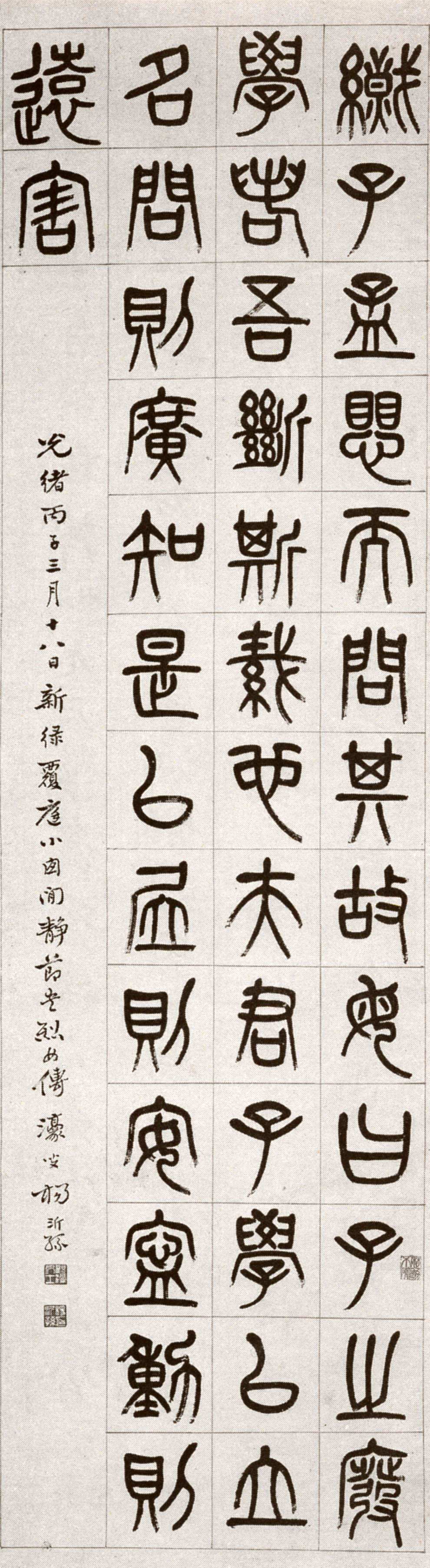 款识:光绪丙子(1876年)三月十八日,新绿覆庭,小窗闲静,节书烈女传。濠叟杨沂孙。
