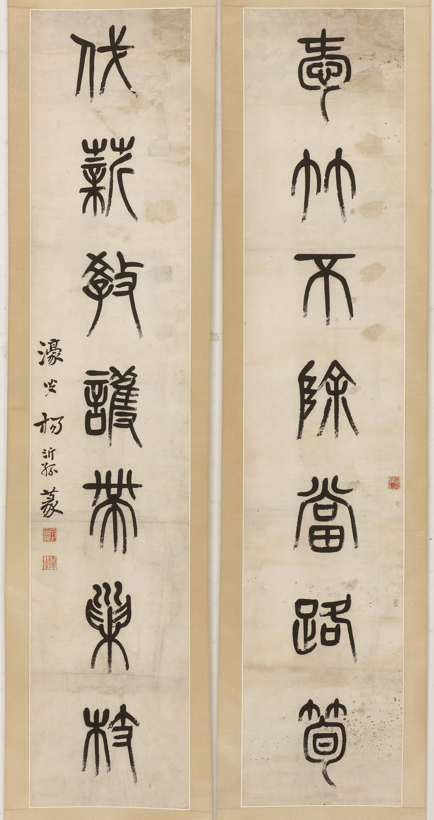 杨沂孙《篆书爱竹伐薪七言联》136×27.5cm×2 无锡博物院藏
