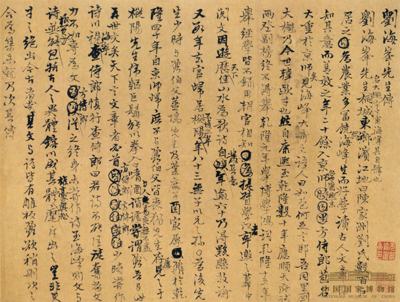 姚鼐《 行草刘海峰传文稿》24.5×22cm 中国国家博物馆藏(田家英家属 捐赠)