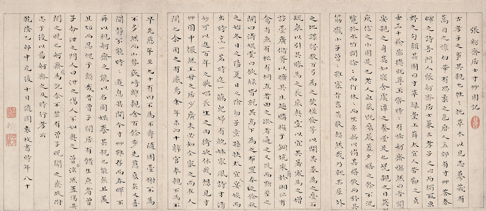 袁枚 楷书《张舸斋先生存草园记》 乾隆乙卯(1795年)作