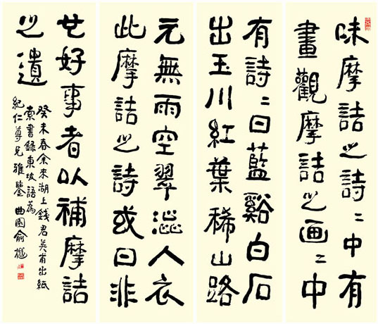 俞樾《隶书四条屏》 横30 × 纵105 厘米 上海书画社藏