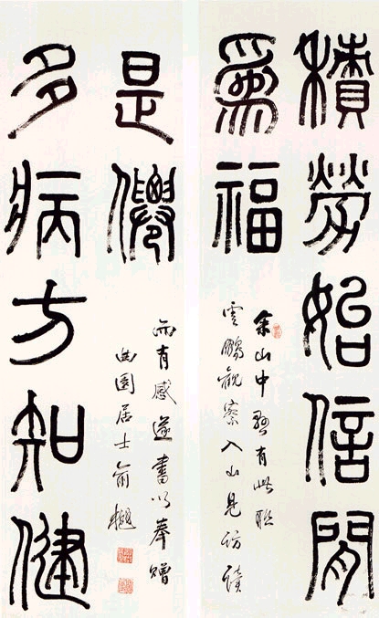 俞樾《篆书七言龙门对》 纸本 113×33.5cm×2