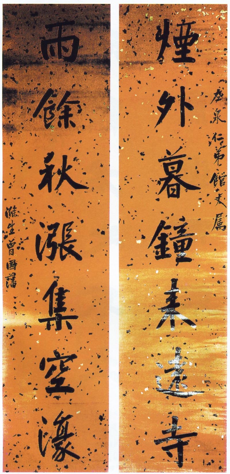 释文:烟外暮钟来远寺,雨馀秋涨集空濠。 款识:左泉仁弟馆丈属。涤生曾国藩 【资料来源】《中国传世书法》下(北京出版社)