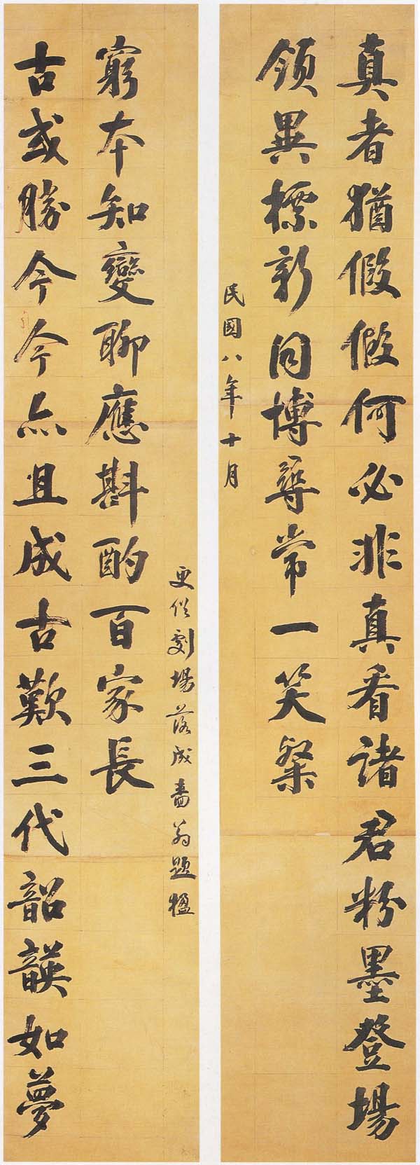张謇《行楷书更俗剧场联》纸本行楷书 303.5×50.8cm×2 南通博物苑藏