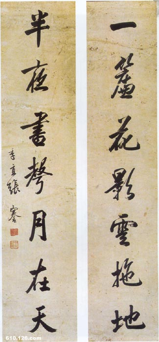 《行书一帘半夜七言联》