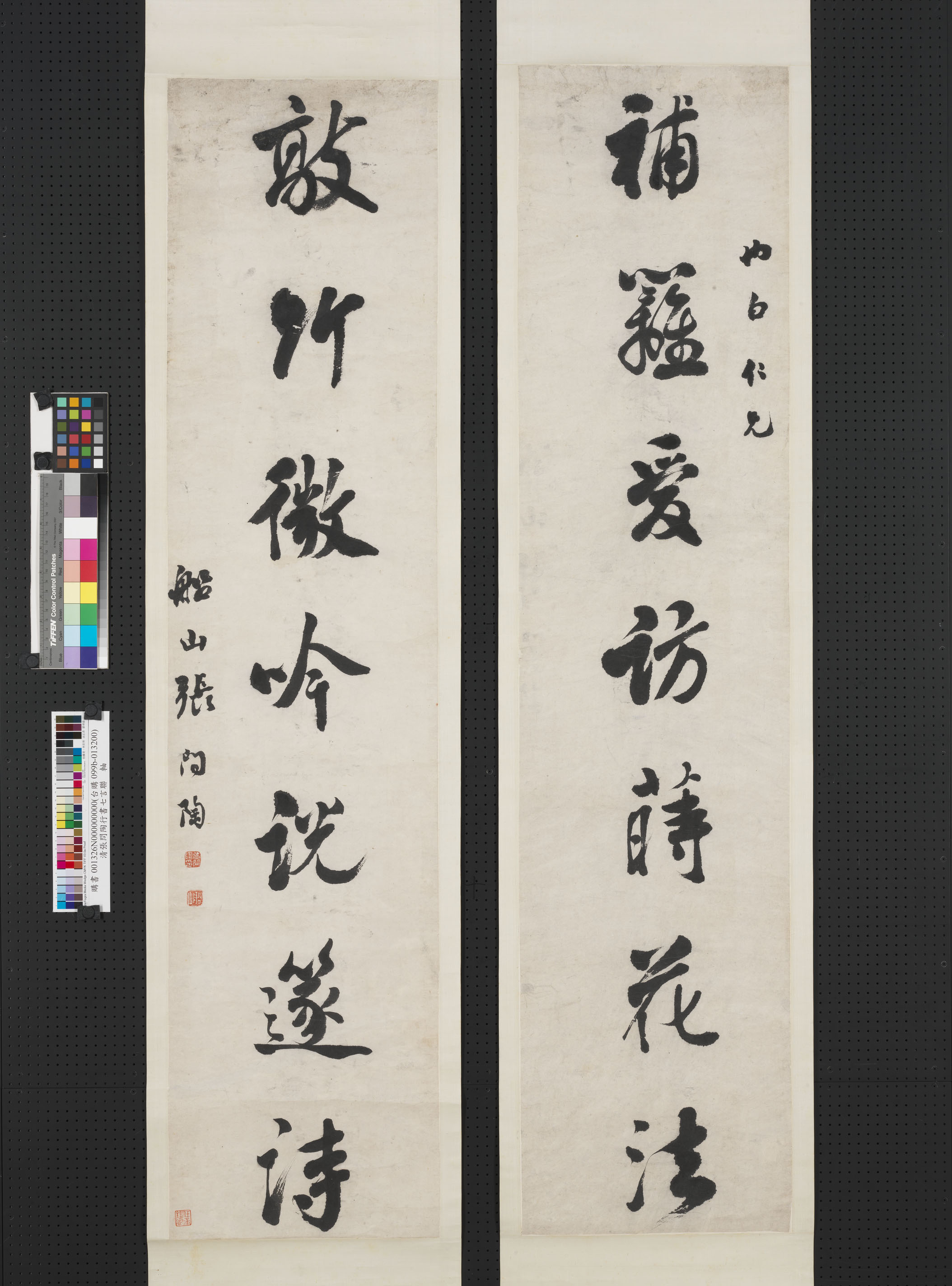 张问陶《行书补篱敲竹七言联》纸本 行书 121.3×28.2cm 台北故宫博物院藏