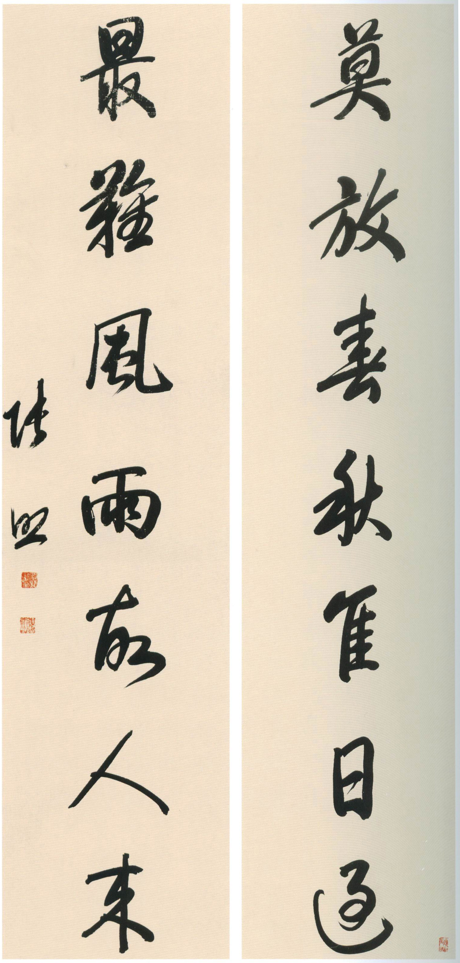 张照《行草书莫放最难七言联》纸本行草书 122×30.9cm 沈阳故宫博物院藏 释文:莫放春秋佳日过,最难风雨故人来。 款署:张照。 【资料来源】《中国法书全集》-17-清代书法-2(文物出版社)