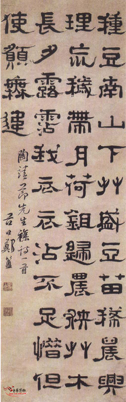 《隶书轴》纸本 纵160厘米、横50厘米。