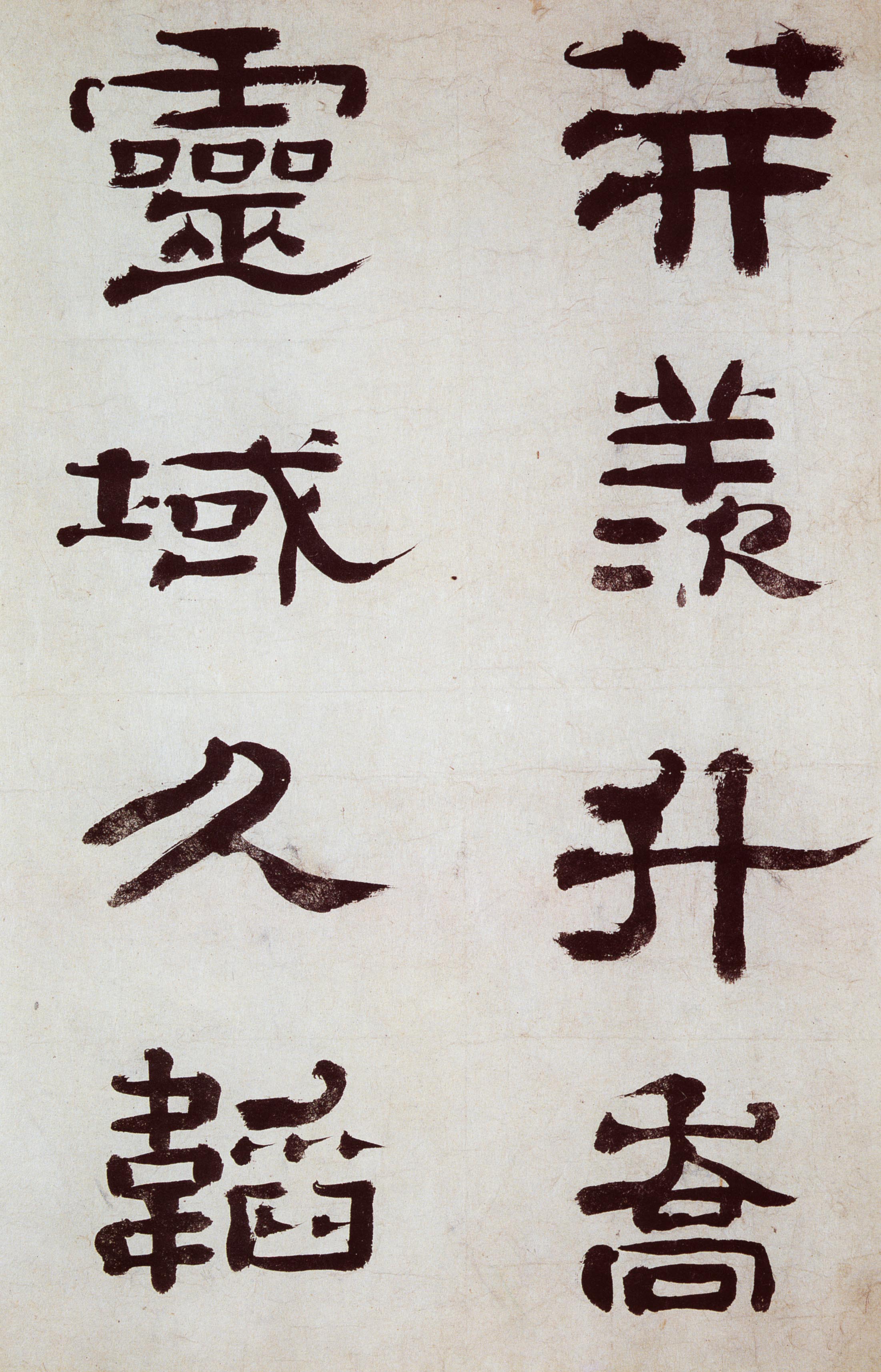 此卷隶书颇有《夏承碑》的遗韵,兼收《曹全碑》之长,横画往往重顿,而收笔处用笔放纵,出锋,具有汉简书法的率性。在一些字的笔画上接入篆书结构,如草字头即是,为书法增加几许古朴、雅致。