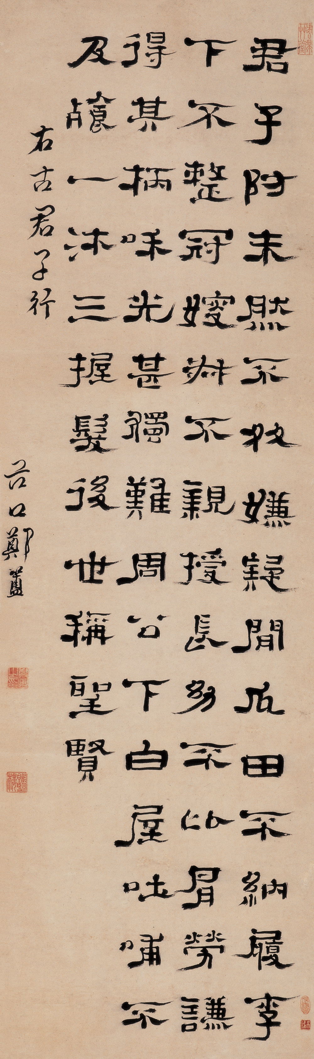 郑簠《隶书古君子行五言诗》 水墨纸本 179.5×53cm(原为广东五桂山房欧初私人藏品)