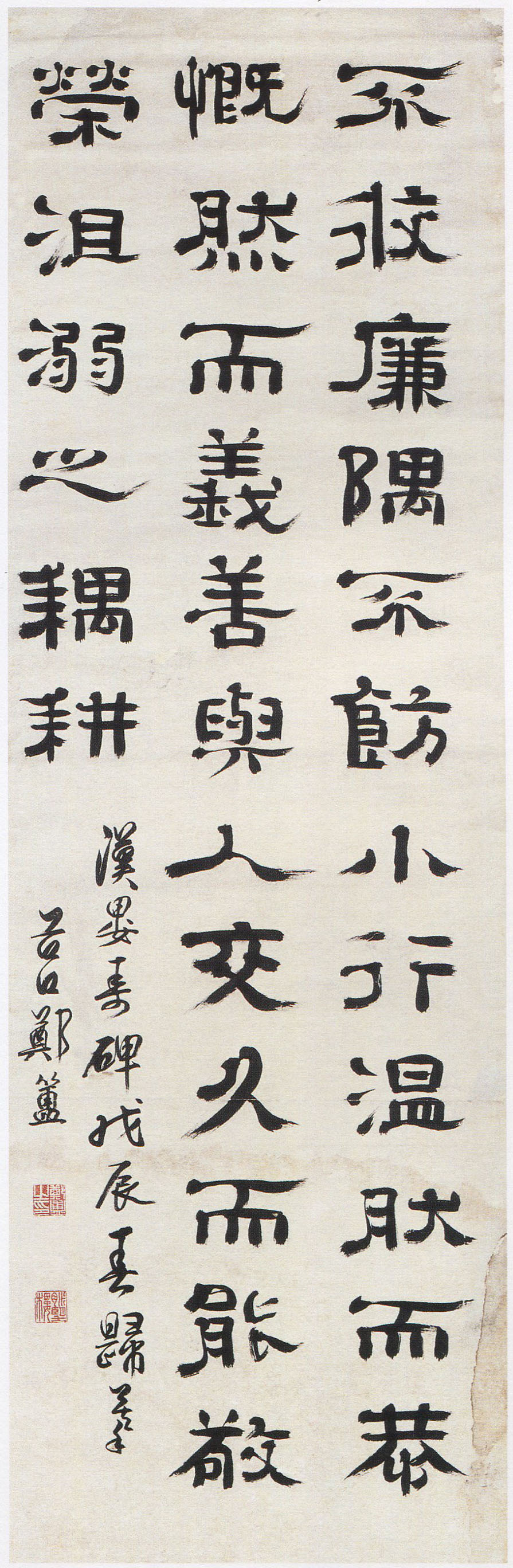 郑簠《隶书周武王带铭等屏》纸本隶书 167×54cm×4,南通博物苑藏