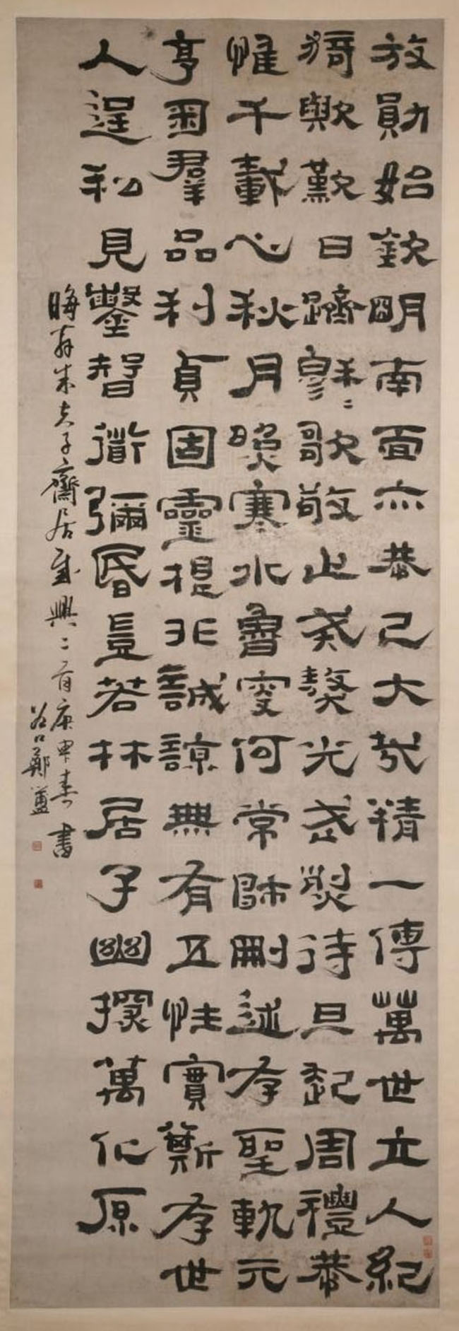 郑簠《隶书朱熹斋居感兴二首诗轴》纸本隶书 267×89cm,重庆中国三峡博物馆藏