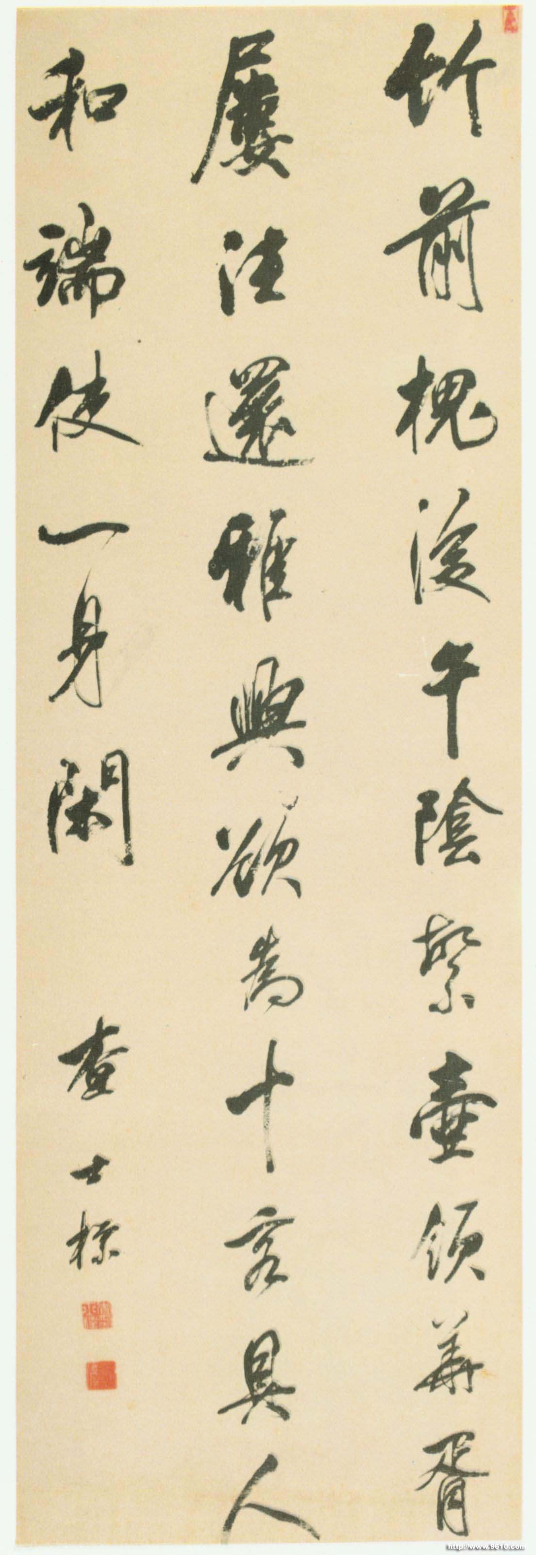 查士标《行书临米芾竹前槐后诗帖轴》纸本行书 215.4×71.8cm 辽宁省博物馆藏