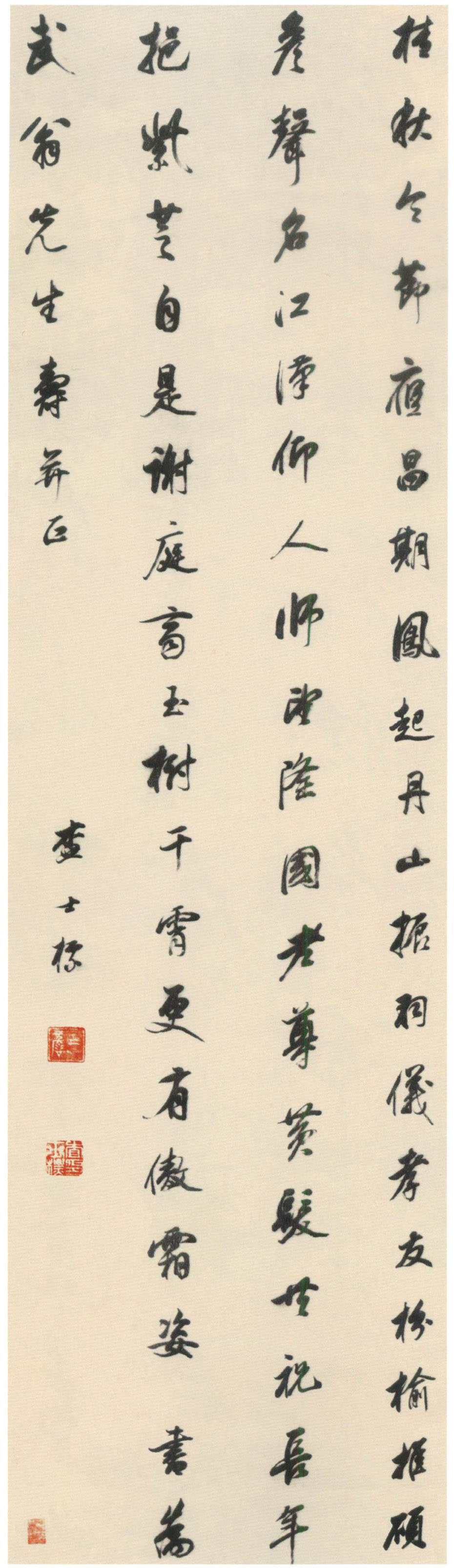 查士标《行书贺寿七律诗轴》绢本行书 175×50cm 浙江省宁波天一阁藏