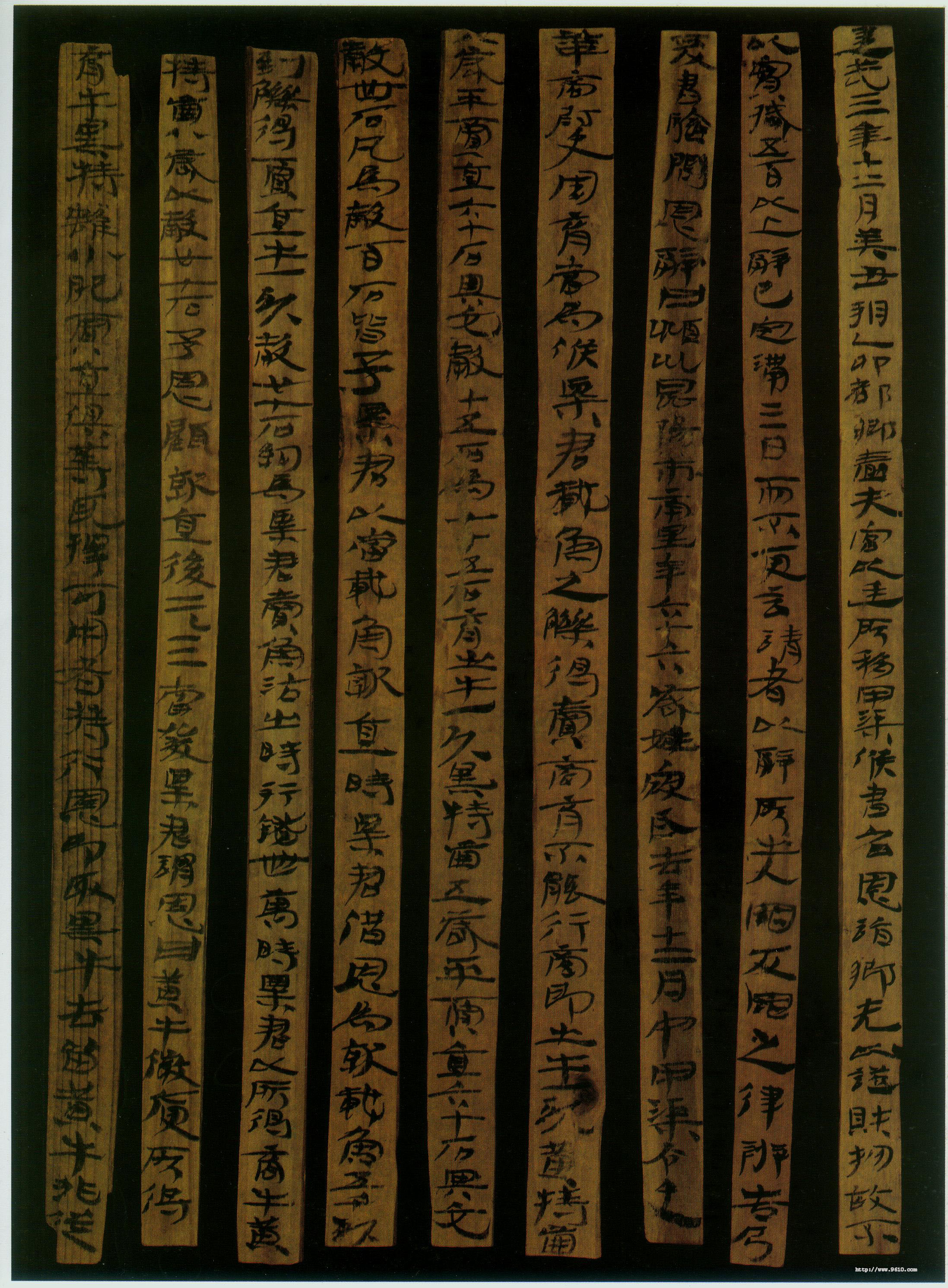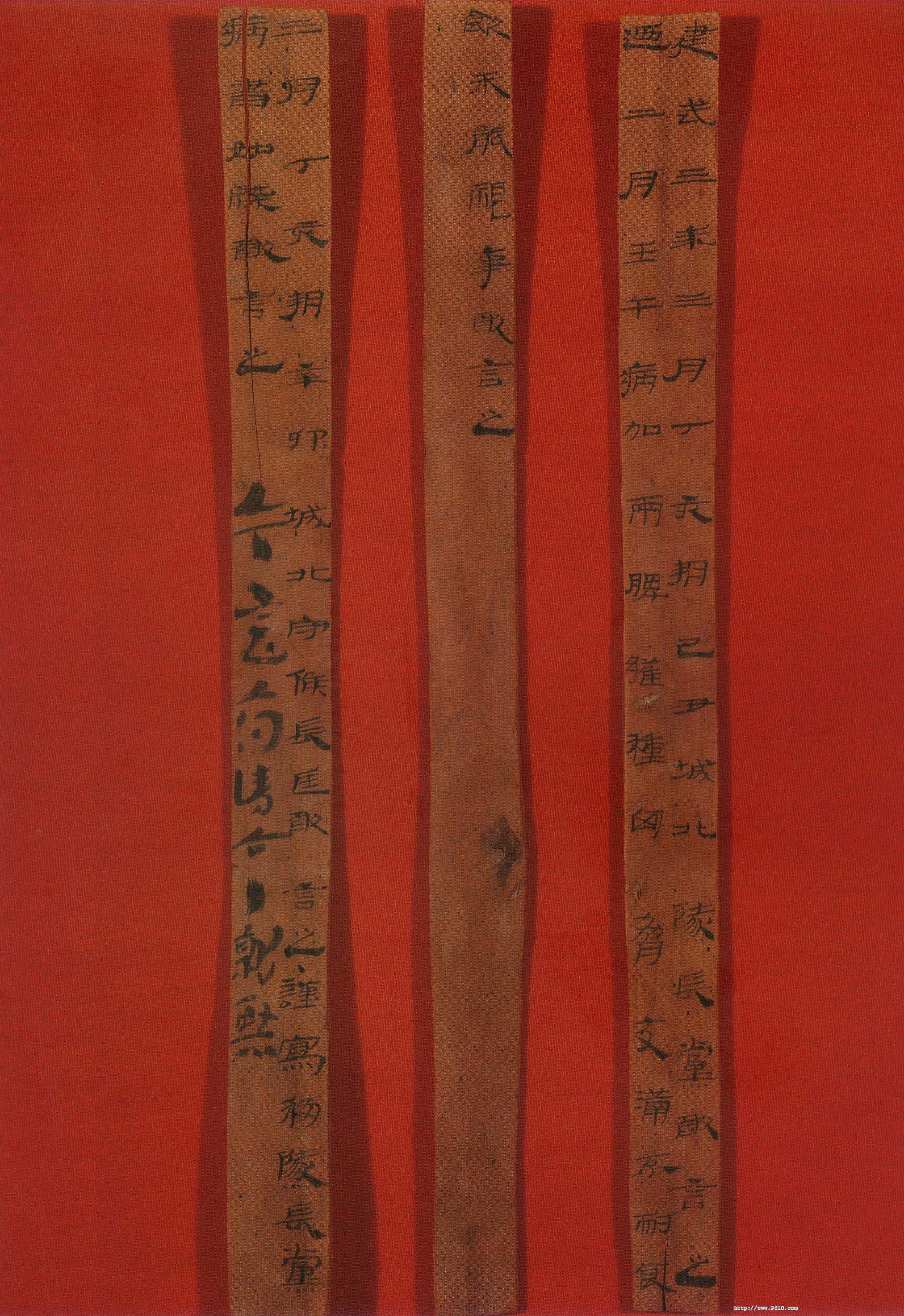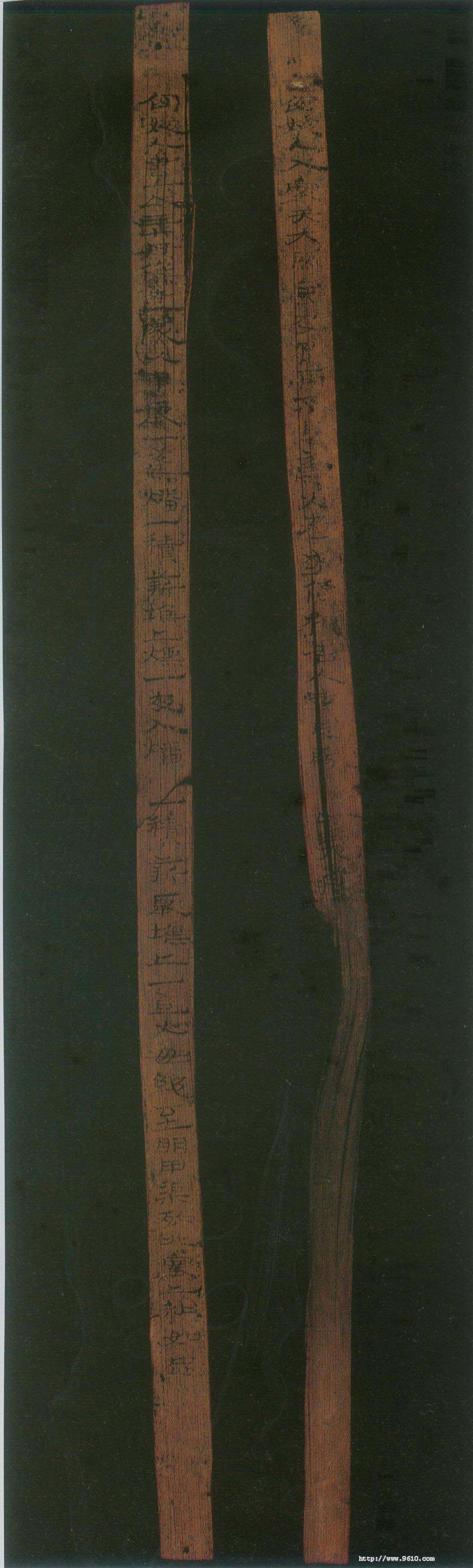 以上汉代边塞遗址出土的简牍,虽然宽窄不同,书写时有单双行之别,但长度都按照汉代一尺制作,长二十三厘米左右。