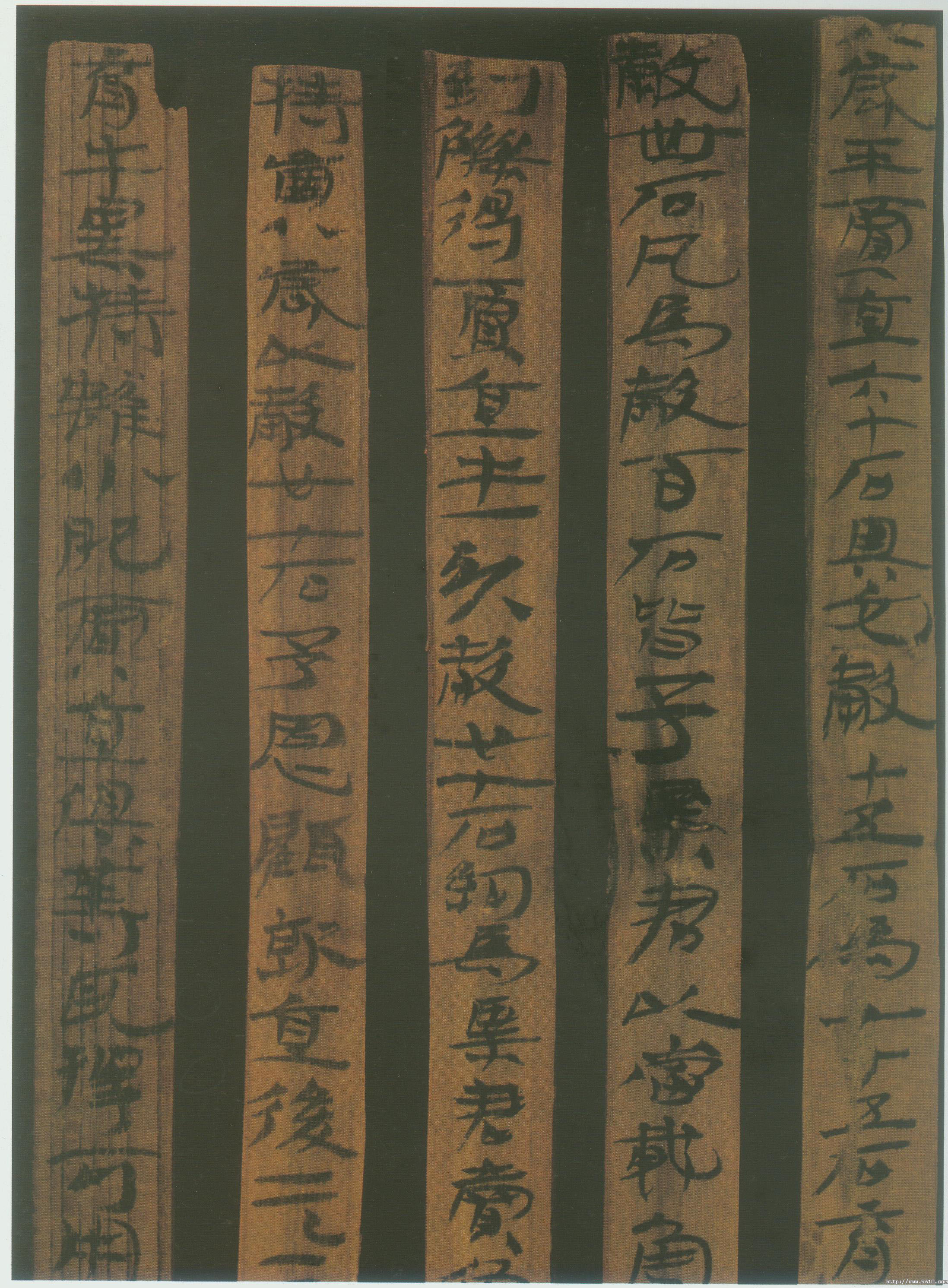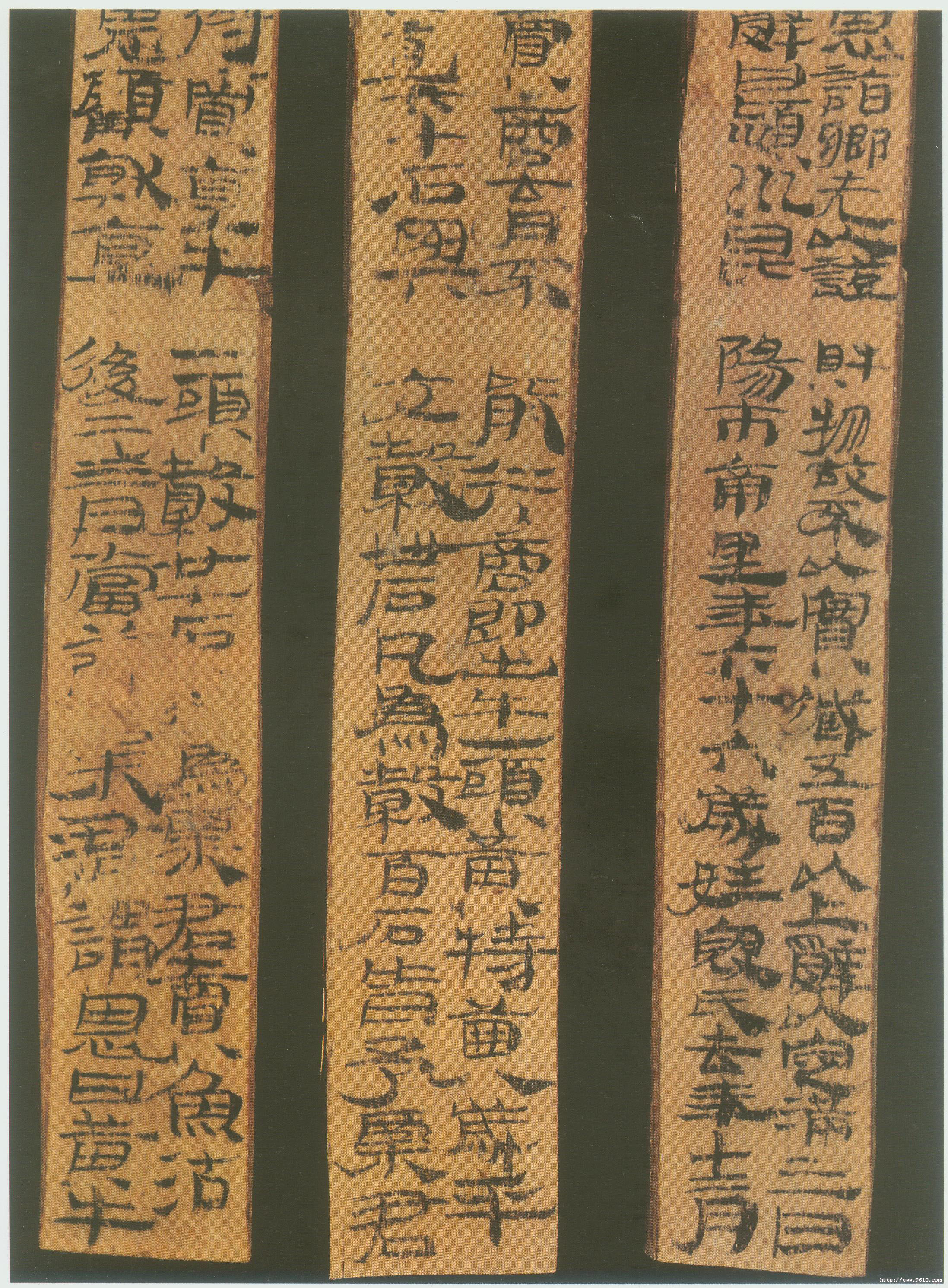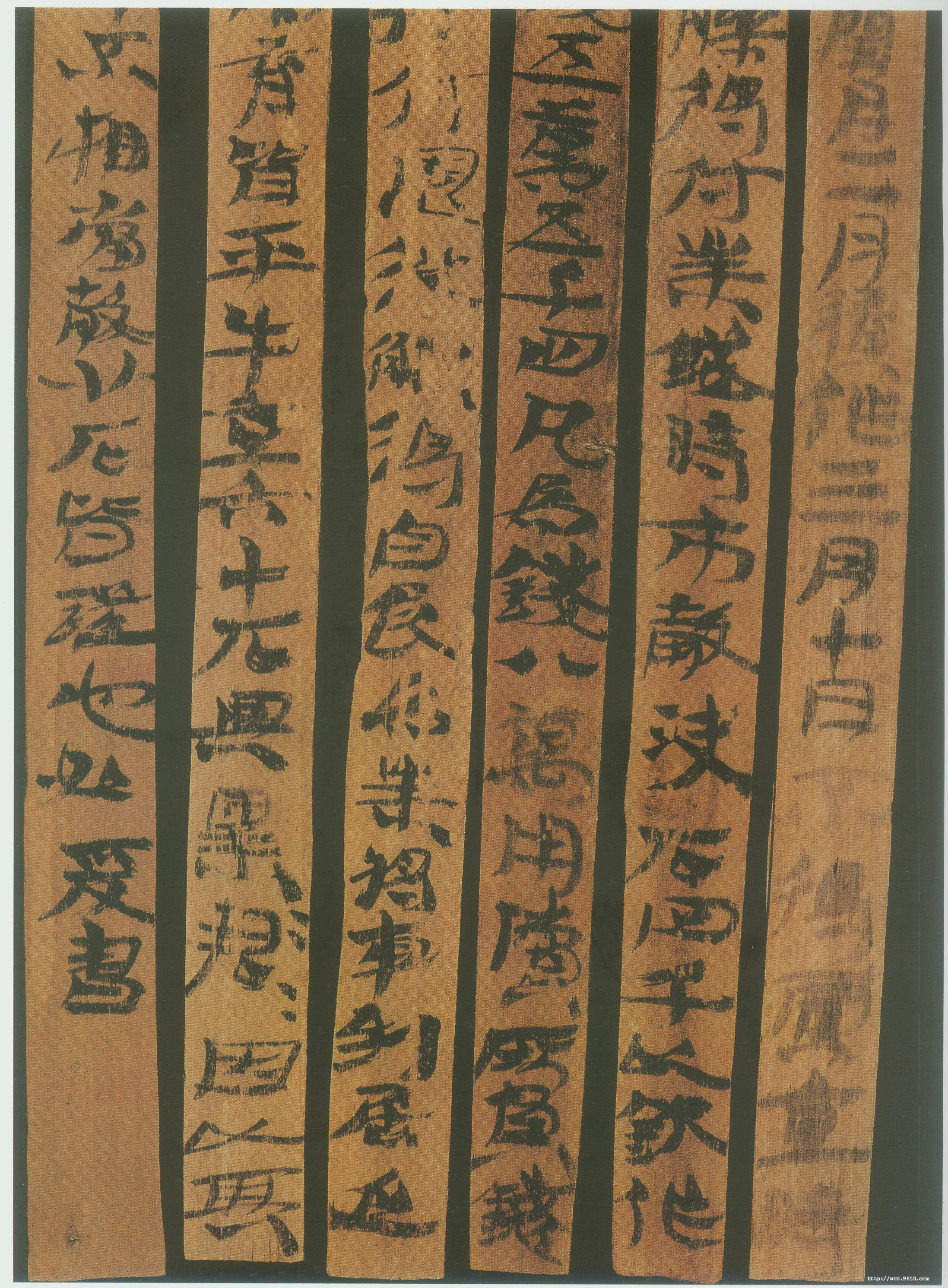 以上汉代边塞遗址出土的简牍,虽然宽窄不同,书写时有单双行之别,但长度都按照汉代一尺制作,长二十三厘米左右。