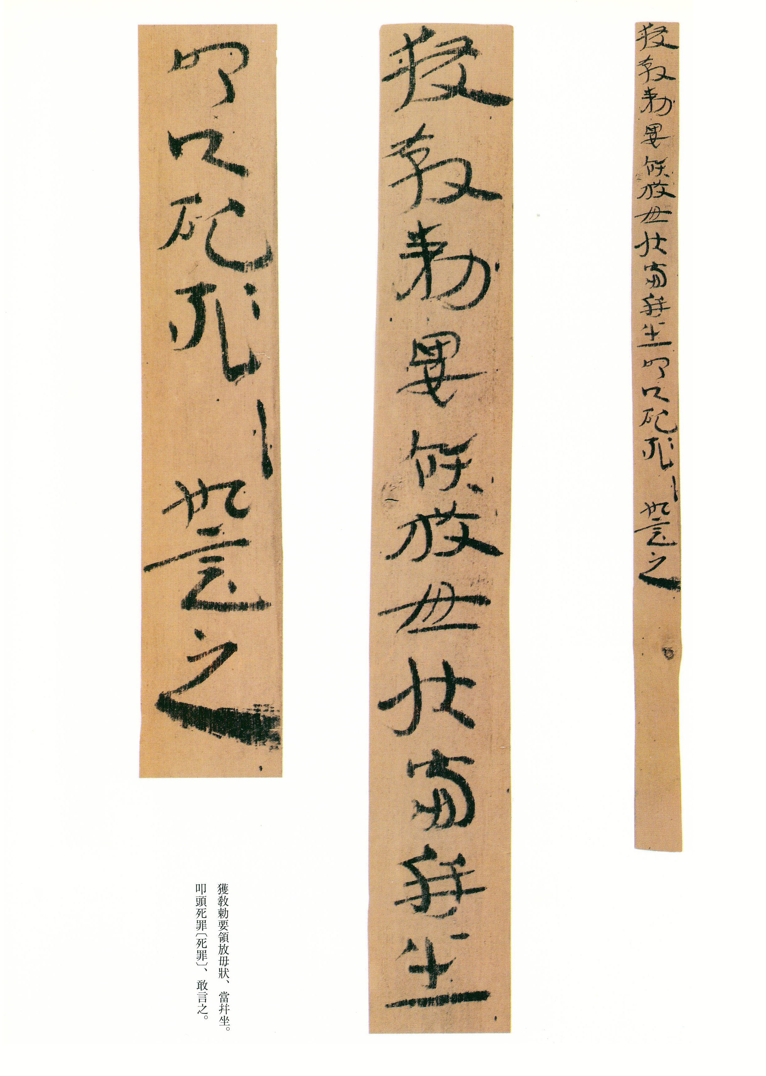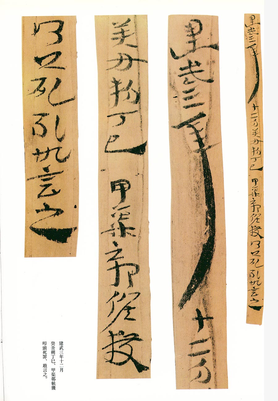 《误死马驹册》属居延简中较具艺术水准的章草作品。启功先生描述汉代章草时说:“汉代草书简牍中的字样,多半是汉隶的架势,而简易地、快速地写去。所以无论一字中间如何简单,而收笔常带出燕尾的波脚。且两字之间绝不相连。”日常草体到西汉末发展成一套约定俗成的技法,《误死马驹册》可谓两汉之交代表性章草样式之一。