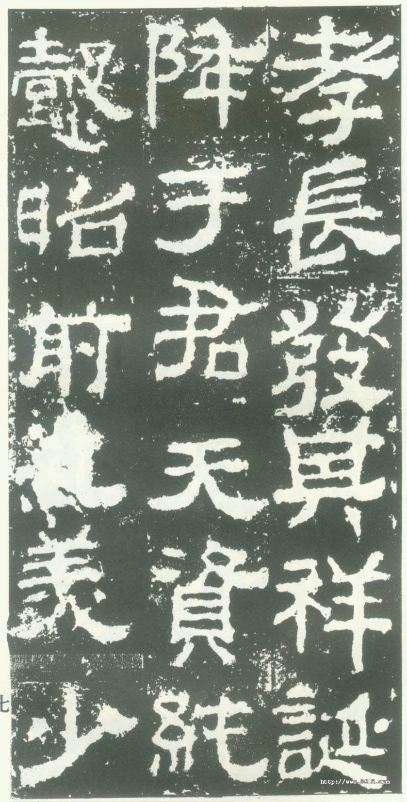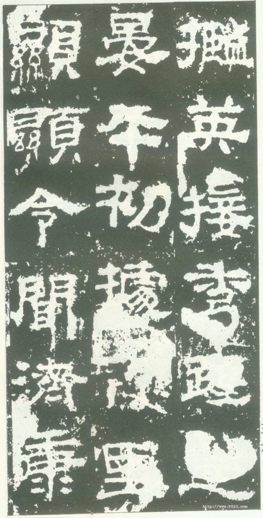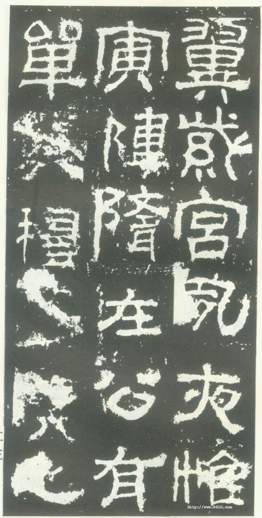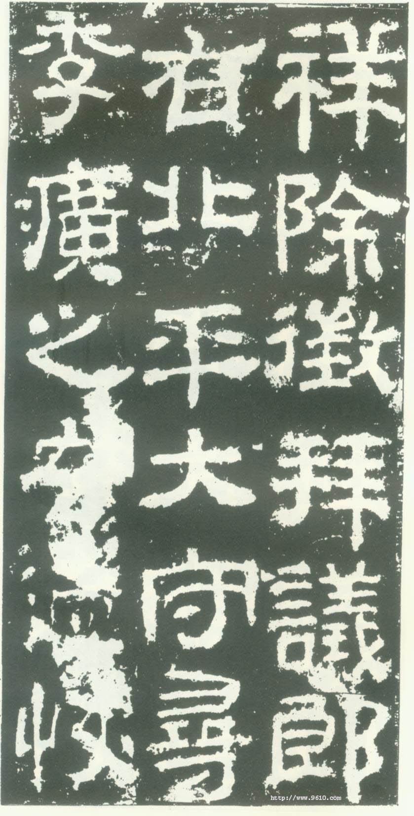 应该看到,这一派书风对后世影响的确既深且大。有人说,北魏太和年间(公元四七七——四九九)洛阳书风尚方折,源出于此;也有人说,它不仅启迪颜鲁公,而且唐初欧阳询书和它也有渊源关系;至于清代伊秉绶,近代吴昌硕,齐白石的隶书得雄强博大之气势,亦均受益于此碑。