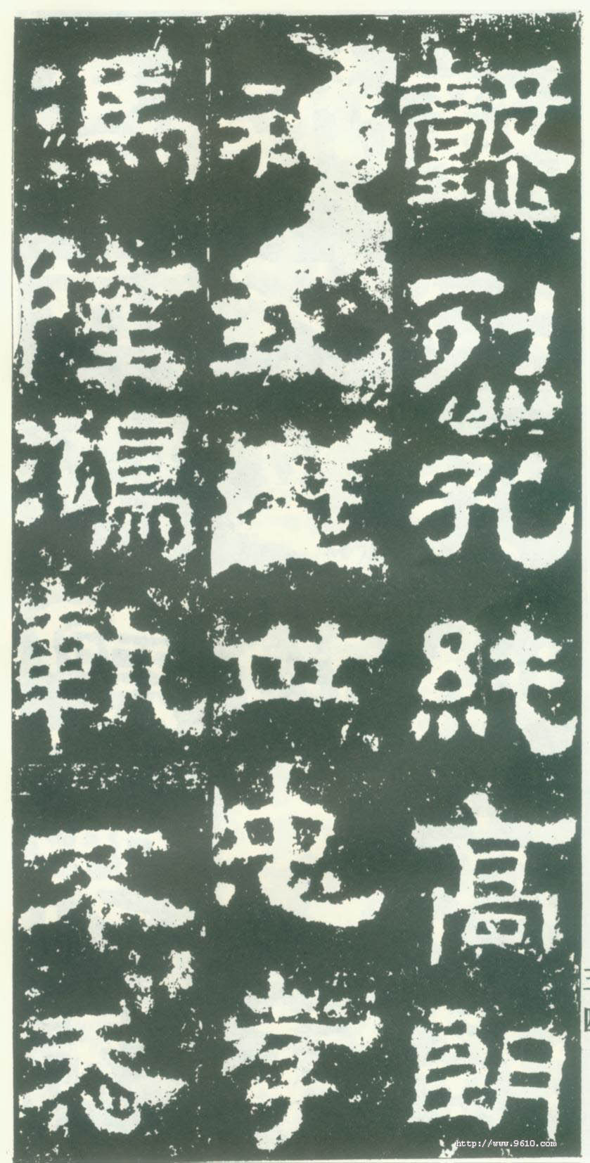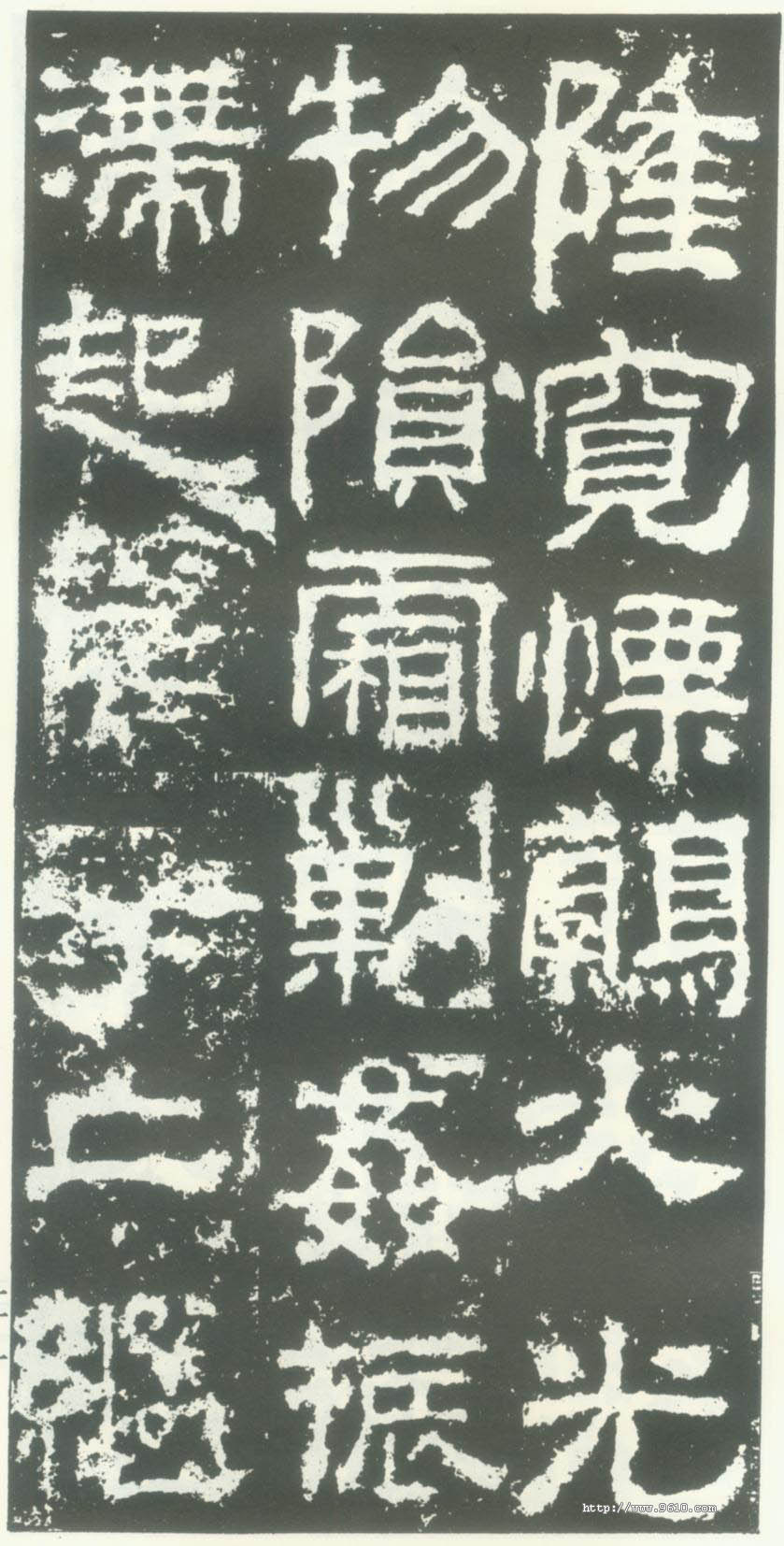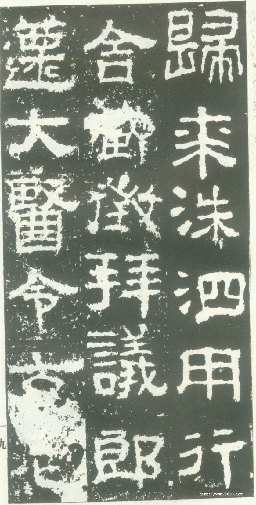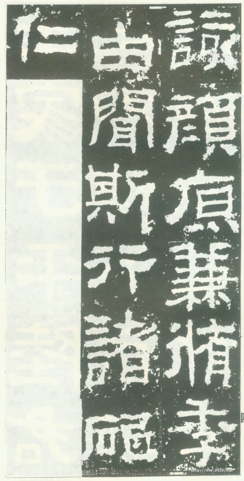 应该看到,这一派书风对后世影响的确既深且大。有人说,北魏太和年间(公元四七七——四九九)洛阳书风尚方折,源出于此;也有人说,它不仅启迪颜鲁公,而且唐初欧阳询书和它也有渊源关系;至于清代伊秉绶,近代吴昌硕,齐白石的隶书得雄强博大之气势,亦均受益于此碑。