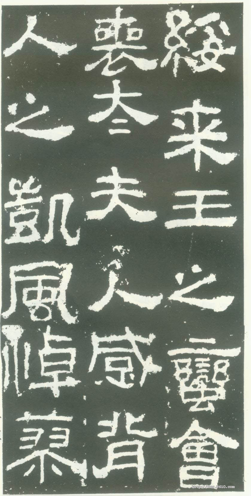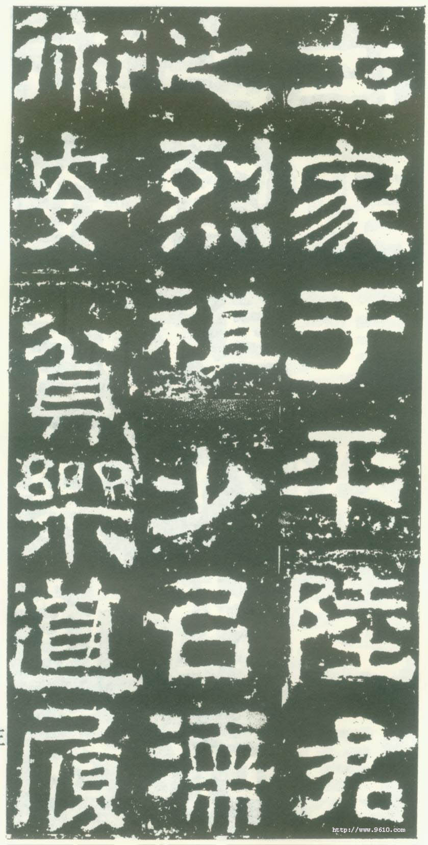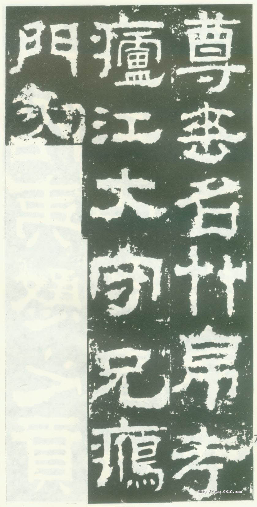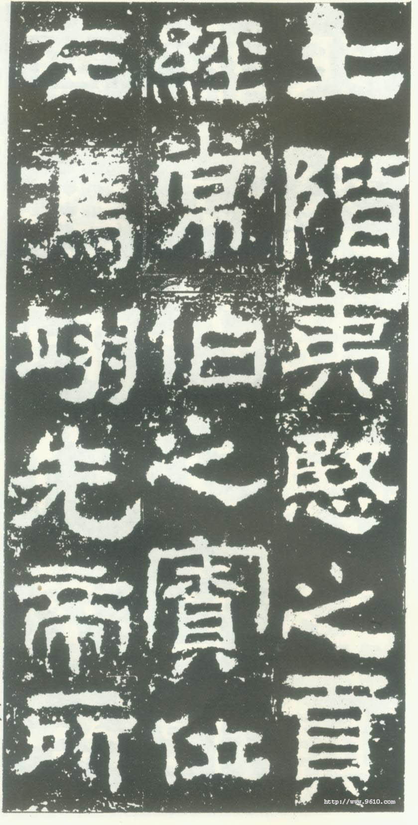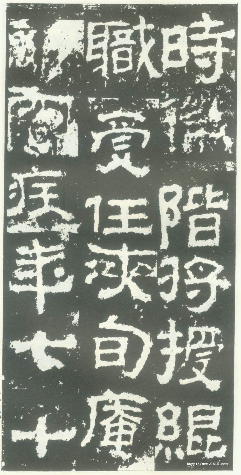 应该看到,这一派书风对后世影响的确既深且大。有人说,北魏太和年间(公元四七七——四九九)洛阳书风尚方折,源出于此;也有人说,它不仅启迪颜鲁公,而且唐初欧阳询书和它也有渊源关系;至于清代伊秉绶,近代吴昌硕,齐白石的隶书得雄强博大之气势,亦均受益于此碑。