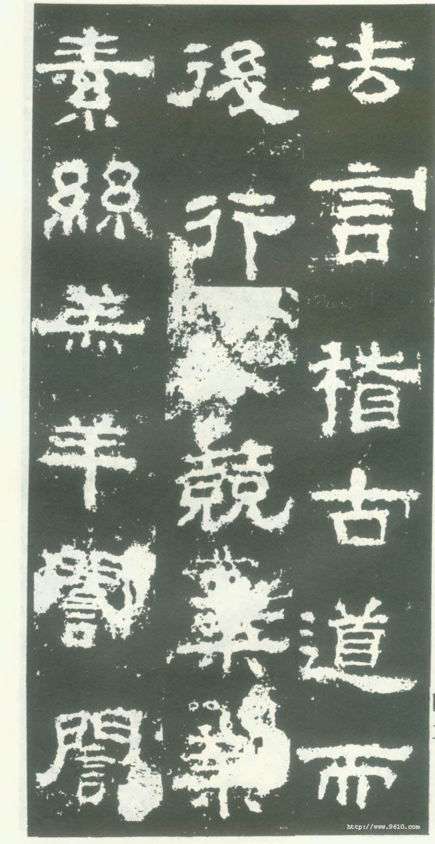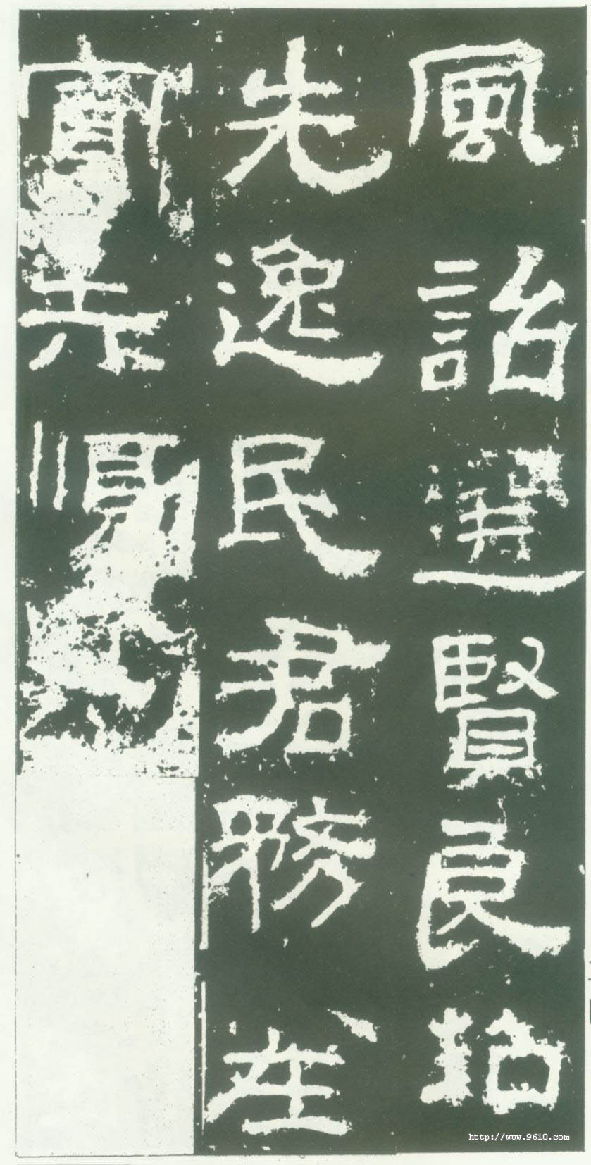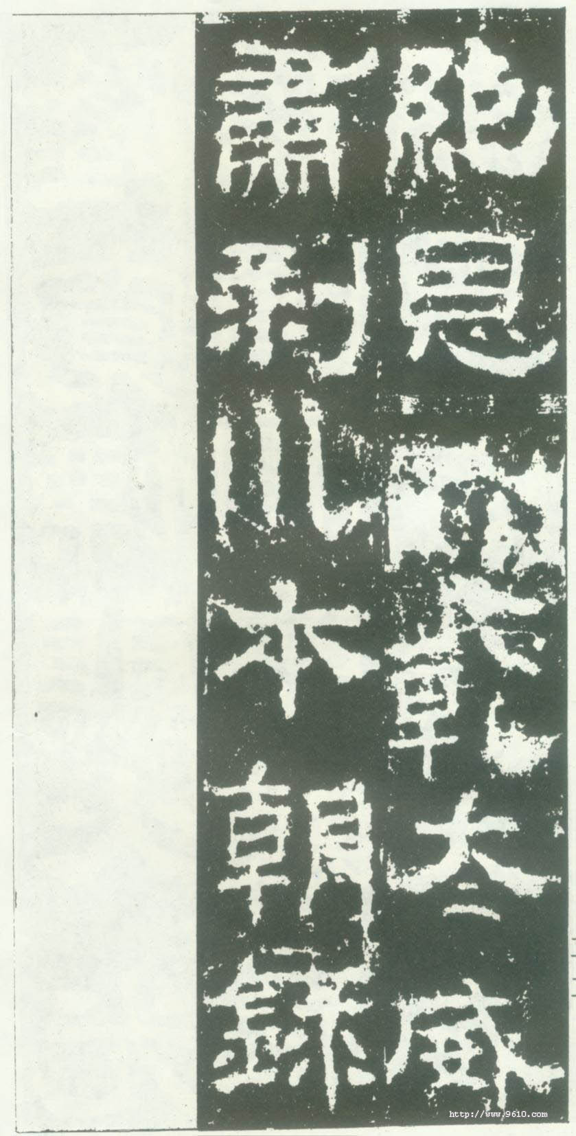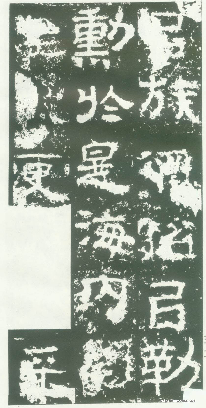 应该看到,这一派书风对后世影响的确既深且大。有人说,北魏太和年间(公元四七七——四九九)洛阳书风尚方折,源出于此;也有人说,它不仅启迪颜鲁公,而且唐初欧阳询书和它也有渊源关系;至于清代伊秉绶,近代吴昌硕,齐白石的隶书得雄强博大之气势,亦均受益于此碑。