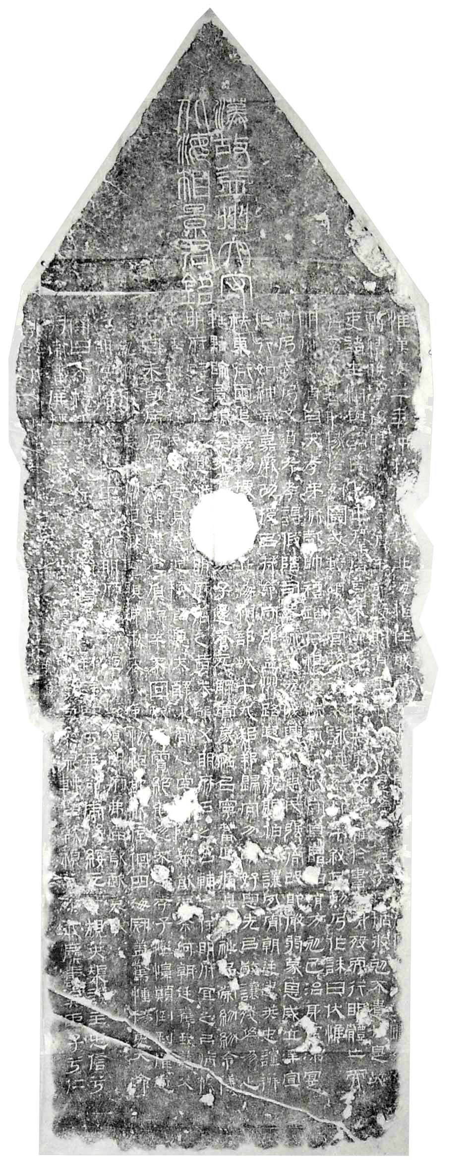 此碑全称《汉益州太守北海相景君铭》,又名《北海相景君碑》。汉汉安二年(143)立,隶书,纵288厘米,横105.6厘米, 碑文17行,行23字。篆额“汉益州太守北海相景君铭”2行12字,碑阴有隶书54人题名。存山东济宁。碑文记景君殁后,门下属吏慕其德而为之树碑之事。景君,不著名字,北海任城(今山东济宁)人。尝属司农,官元城(今河北大名县东)令、益州(治滇池,在今四川晋宁县东)太守、北海相。汉安二年卒。