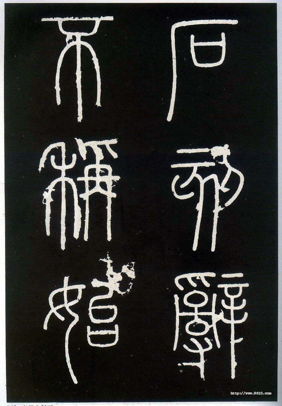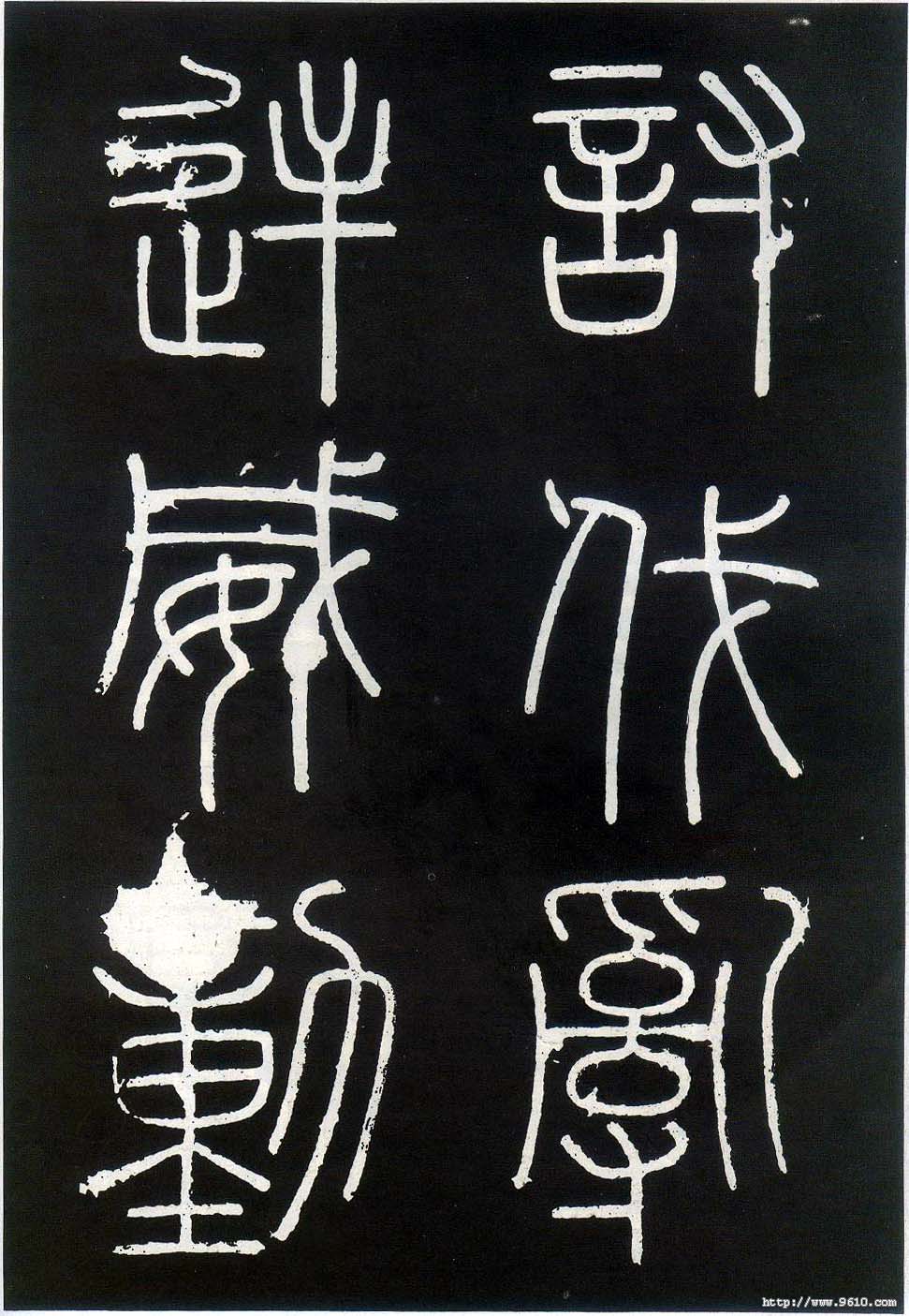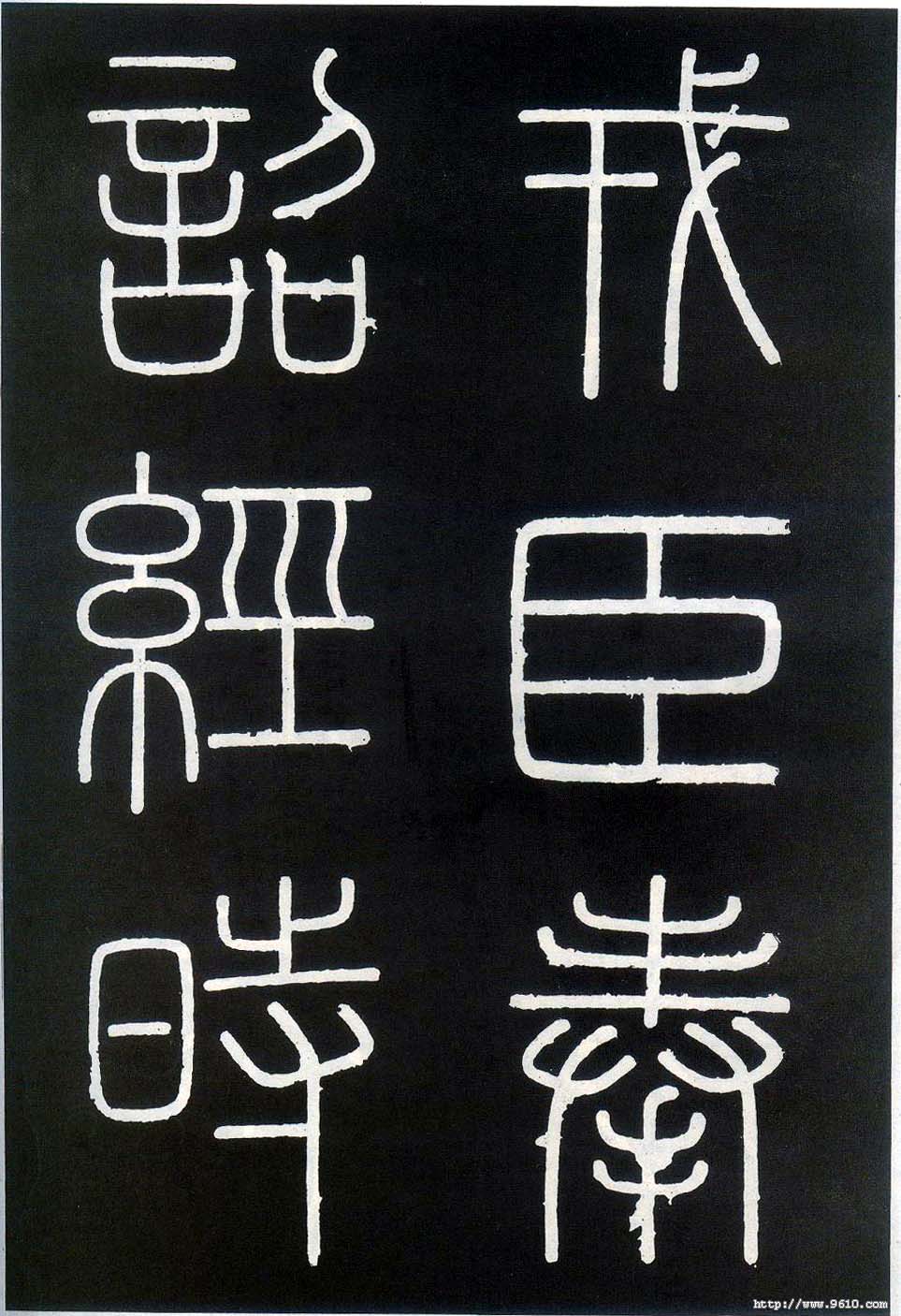 临写此碑。首重用笔,妙在用锋。因为没有写出高质量的线条,结构再好仍是无功而返。因此,掌握正确的用笔犯法至关重要。那么,应当怎样临写此碑或者说应当注意什么呢?我们知道,小篆的点画只有两种,一是直画、二是弧画。但无论哪一种点画。其书法都有“起、行、收”三个过程。所谓“起”,即“逆锋起笔”,它要求笔锋应朝行笔的反方向入纸,使其锋藏。对初学者而言,起笔“藏锋”使一个难度较大的而又必须首先解决的技术问题。它不仅关系到点画书写的力度,而且对点画之间的承接呼应起着决定性的作用,可以说,没有熟练地掌握“起笔”的这个技术动作,学书要想深入那将是寸步难行。所谓“行”,即“中锋行笔”,它要求匀笔时笔锋处于线条的中间,同时应充分利用笔毫的弹性,用“提”法抽擎“杀纸”而行。当然,在运笔的过程中并非就是“一味”的“提”,其中也有“按”的成分控制线条的圆匀及水墨的掺入含量。并且,不让笔墨“走偏”,还常常伴有连续的饿提按交替动作,这种情况在书写弧画时尤为明显。但应注意的是,书写弧画时,最好不要用“捻管”的方法来维护“中锋”,而应尽可能通过“腕”的“旋动”,伴以微妙的提按来对锋芒加以驱动,这样产生的线条更富有弹性。另外,在连续出现弧形的线条时,“提按”的幅度还可能加大,但一定要注意“交接”自然,不露圭角,以保持线条的流畅。所谓“收”,即“回锋收笔”,它是运笔至点画尽头时的一个技术动作,通常为“一驻即收”并伴有轻微的“反弹”现象。值得注意的是,收笔的“回”并非是为了填补点画尾部的缺陷,而是“回头”寻找下一个“落点”,同时,在“回”的瞬间将笔锋“挺正”,以迎接下一个“逆锋起笔”。