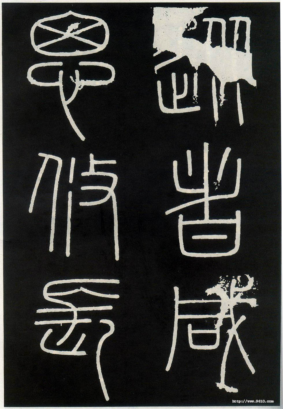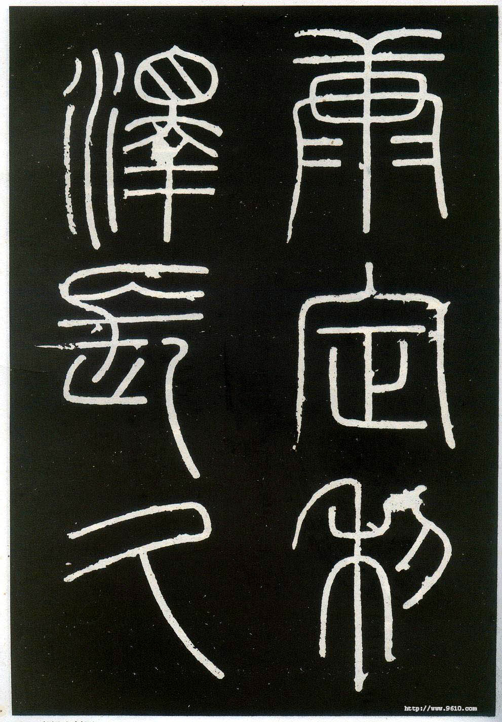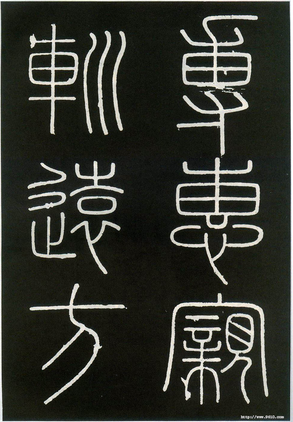 临写此碑。首重用笔,妙在用锋。因为没有写出高质量的线条,结构再好仍是无功而返。因此,掌握正确的用笔犯法至关重要。那么,应当怎样临写此碑或者说应当注意什么呢?我们知道,小篆的点画只有两种,一是直画、二是弧画。但无论哪一种点画。其书法都有“起、行、收”三个过程。所谓“起”,即“逆锋起笔”,它要求笔锋应朝行笔的反方向入纸,使其锋藏。对初学者而言,起笔“藏锋”使一个难度较大的而又必须首先解决的技术问题。它不仅关系到点画书写的力度,而且对点画之间的承接呼应起着决定性的作用,可以说,没有熟练地掌握“起笔”的这个技术动作,学书要想深入那将是寸步难行。所谓“行”,即“中锋行笔”,它要求匀笔时笔锋处于线条的中间,同时应充分利用笔毫的弹性,用“提”法抽擎“杀纸”而行。当然,在运笔的过程中并非就是“一味”的“提”,其中也有“按”的成分控制线条的圆匀及水墨的掺入含量。并且,不让笔墨“走偏”,还常常伴有连续的饿提按交替动作,这种情况在书写弧画时尤为明显。但应注意的是,书写弧画时,最好不要用“捻管”的方法来维护“中锋”,而应尽可能通过“腕”的“旋动”,伴以微妙的提按来对锋芒加以驱动,这样产生的线条更富有弹性。另外,在连续出现弧形的线条时,“提按”的幅度还可能加大,但一定要注意“交接”自然,不露圭角,以保持线条的流畅。所谓“收”,即“回锋收笔”,它是运笔至点画尽头时的一个技术动作,通常为“一驻即收”并伴有轻微的“反弹”现象。值得注意的是,收笔的“回”并非是为了填补点画尾部的缺陷,而是“回头”寻找下一个“落点”,同时,在“回”的瞬间将笔锋“挺正”,以迎接下一个“逆锋起笔”。