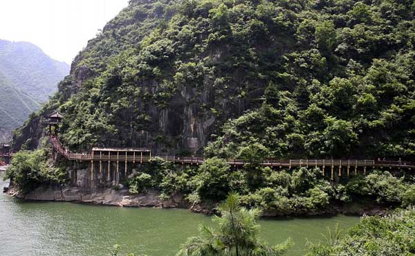 陕西褒城褒斜道南端石门隧道 仿古栈道