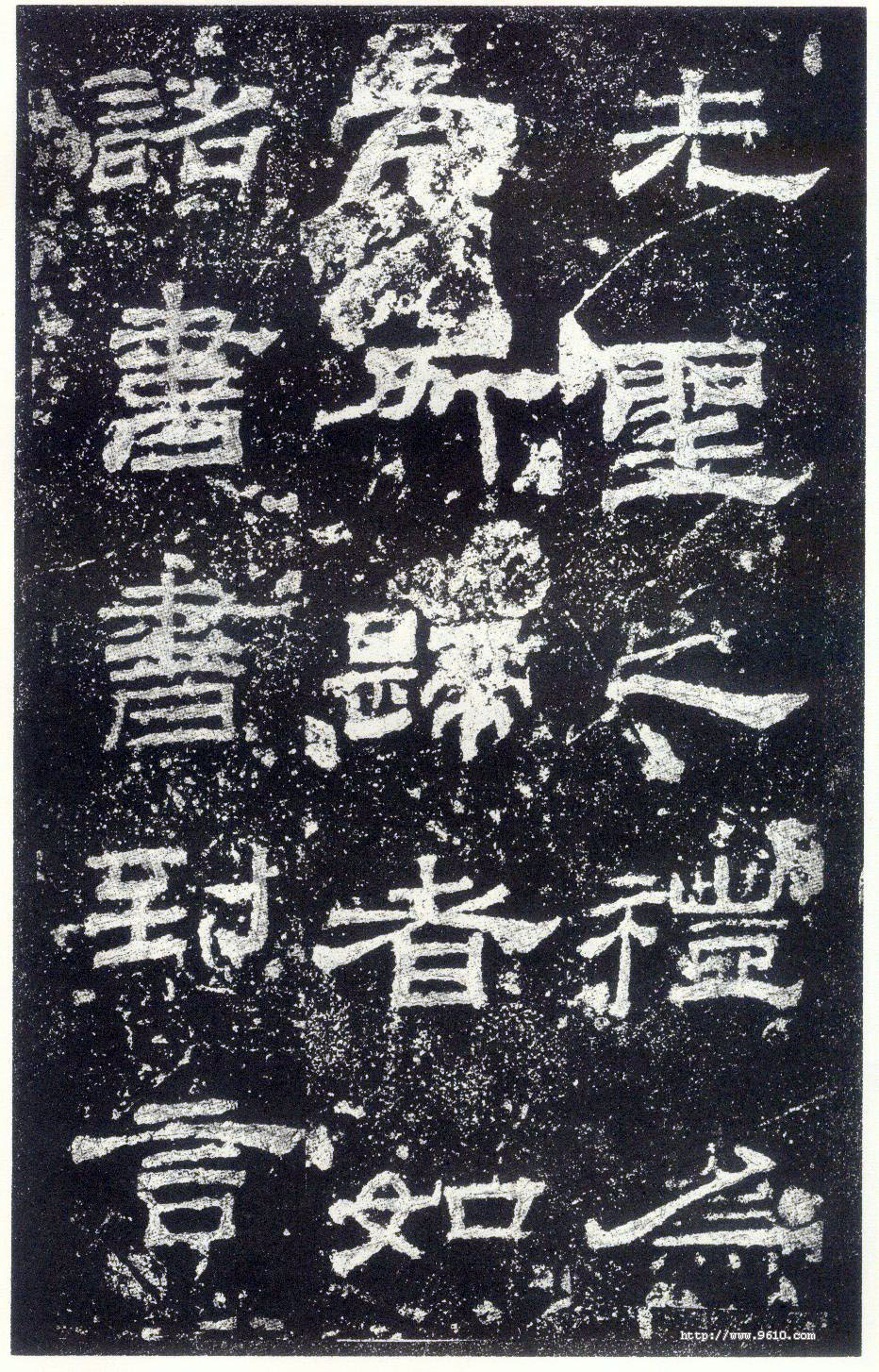 清 康有为:建初以后,变为波磔,篆、隶迥分。于是《衡方》、《乙瑛》等碑,体扁已极,波磔分背,隶体成矣。(《广艺舟双楫》)