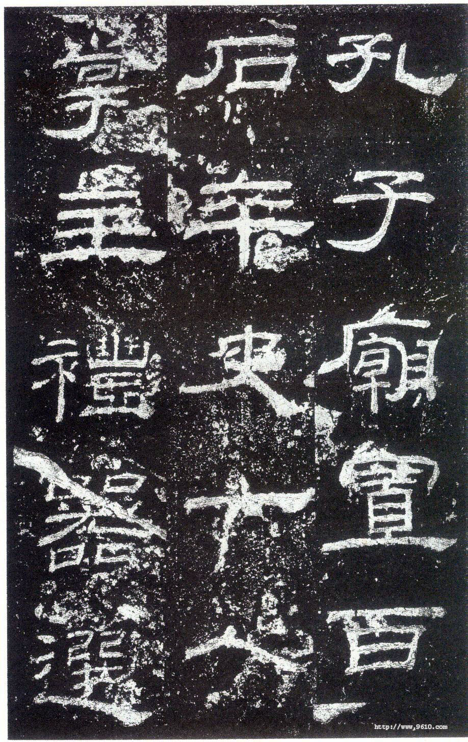 全称《汉鲁相乙瑛置百石卒史碑》或《孔和碑》。桓帝永兴元年(15)刻。现存山东曲阜孔庙。碑高3.6米,广1.29米。隶书18行,行40字,无额。后有宋人张雅圭题字二行。碑刻内容为鲁相乙瑛代孔子后人上书汉廷,请设立一名掌握孔庙礼器的低级官吏,其级别为“百日卒史”,并提出此官任职条件。